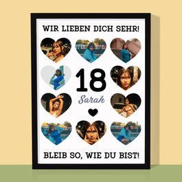 €28,99Grundpreis /Nicht verfügbarFotocollage: 18 Herzen - Druck mit Rahmen - Vertikal