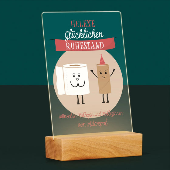 €12,99Grundpreis /Nicht verfügbarName Und Unterschrift: Glücklichen Ruhestand - Druck auf Acrylglas mit LED-Beleuchtung