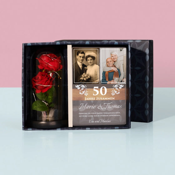 €35,99Grundpreis /Nicht verfügbarFotocollage: Gemeinsame Jahre - Geschenkset mit Druck auf Acrylglas und ewiger Rose