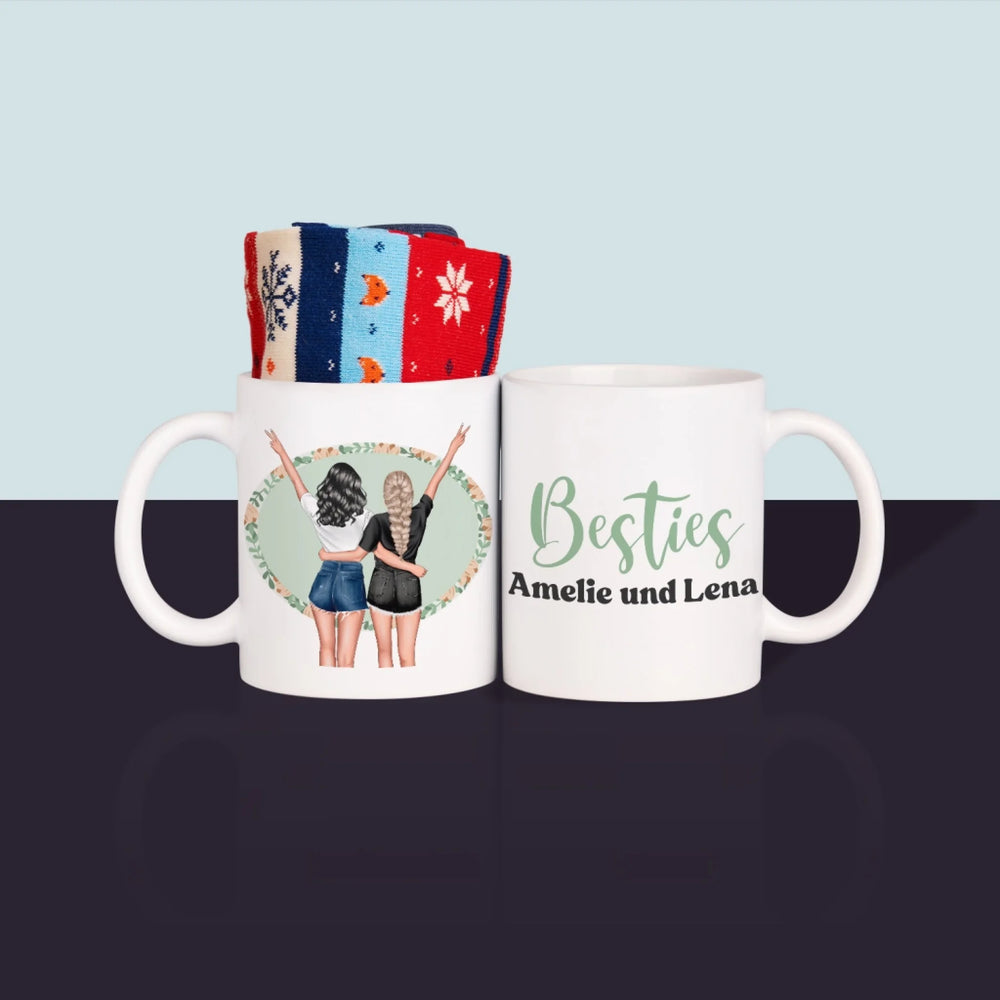 Hochwertiger Becher mit einer von Ihnen gewählten Personalisierung und Socken im Inneren.