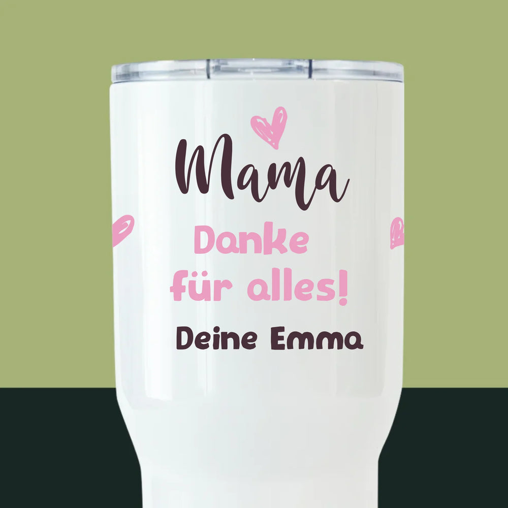 Ein hochwertiger Thermobecher mit Personalisierung nach Ihrer Wahl.