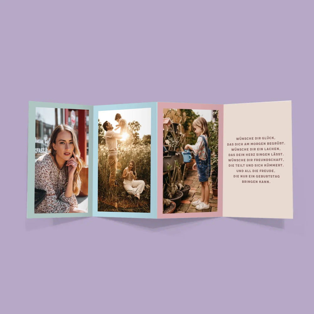 Harmonikaartig gefaltete Bilderreihe mit personalisiertem Design nach Ihrer Wahl.
