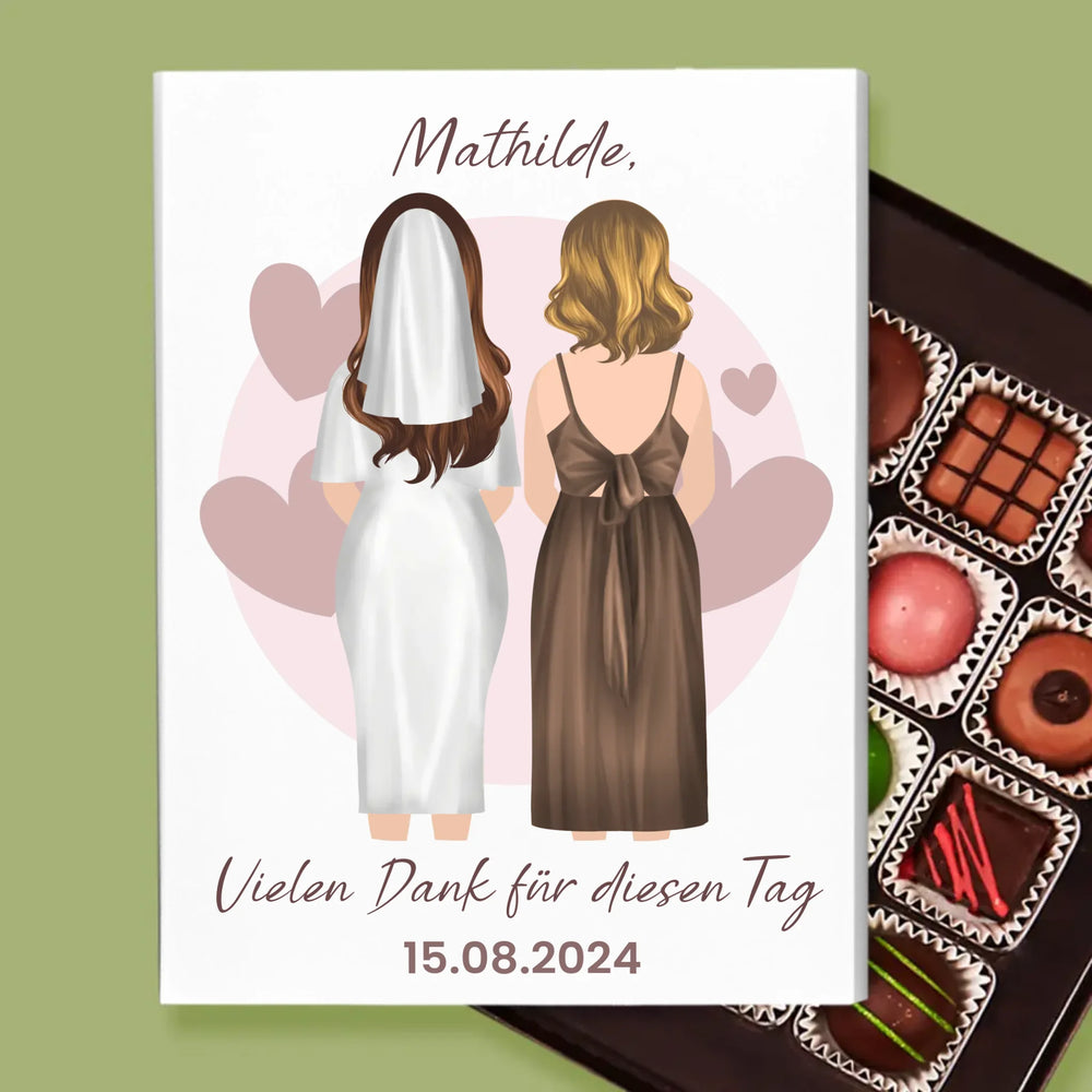 Leckere Pralinen aus belgischer Schokolade in einer eleganten Schachtel, individuell personalisiert.
