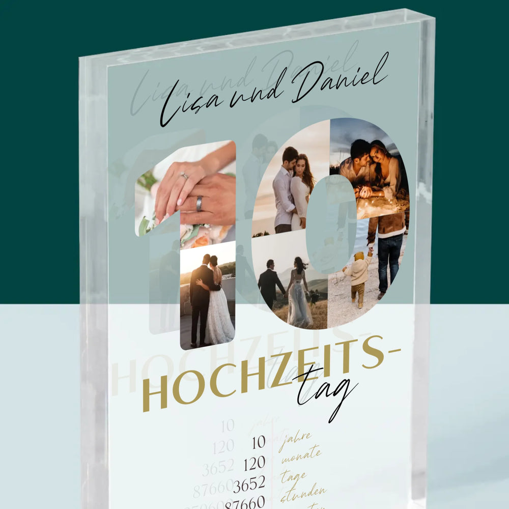 Buchstaben-Collage: 10. Hochzeitstag - Acrylblock - Vertikal