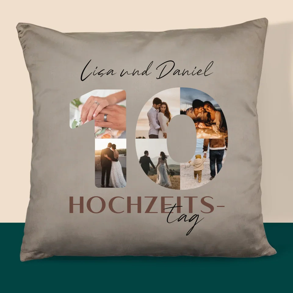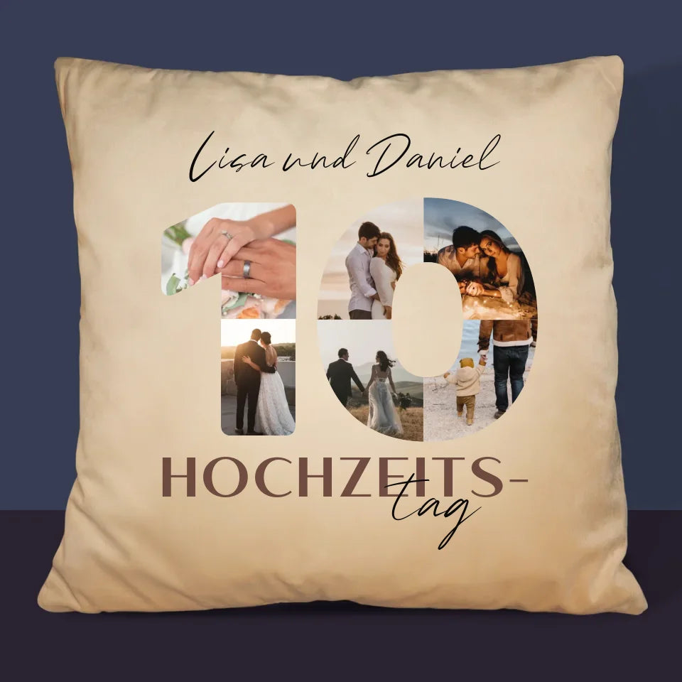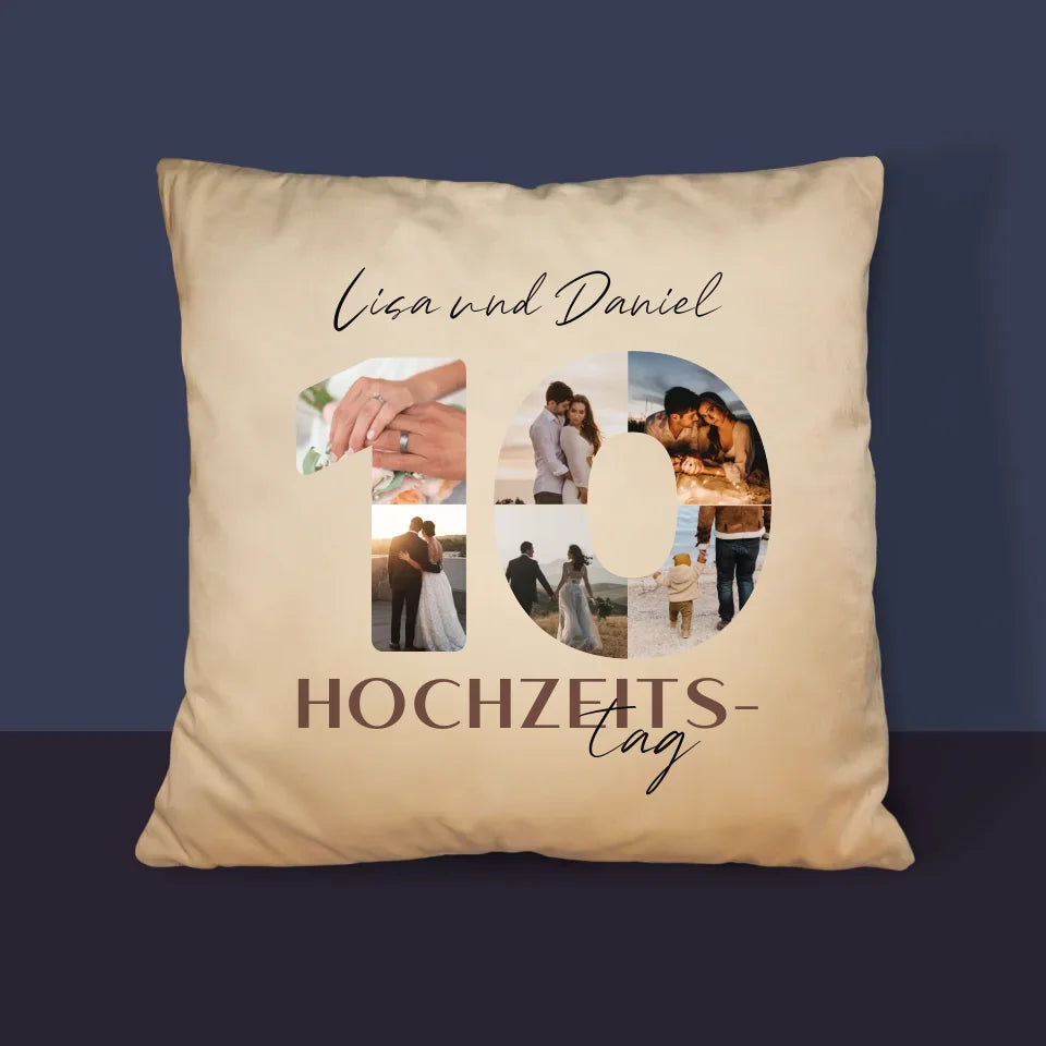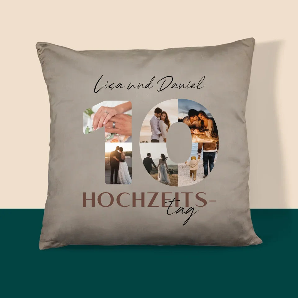 Buchstaben-Collage: 10. Hochzeitstag - Kissen