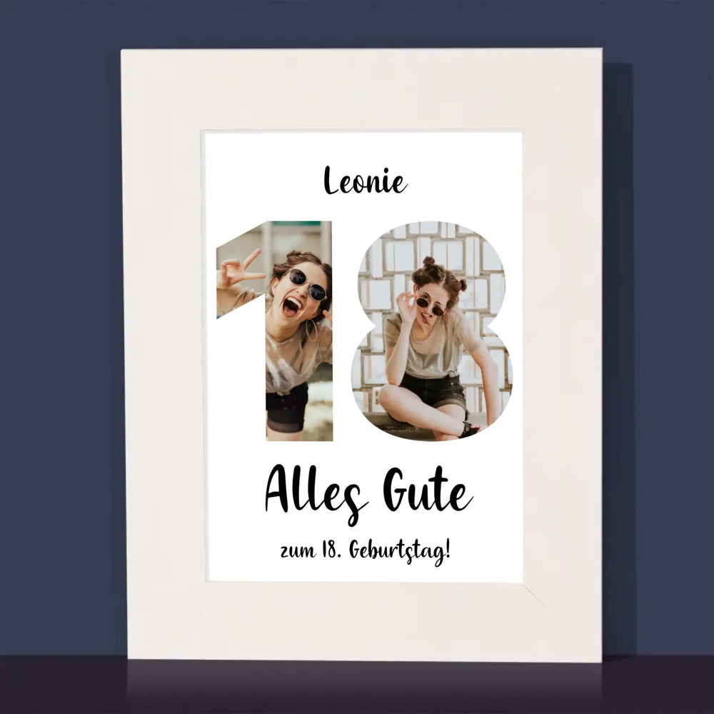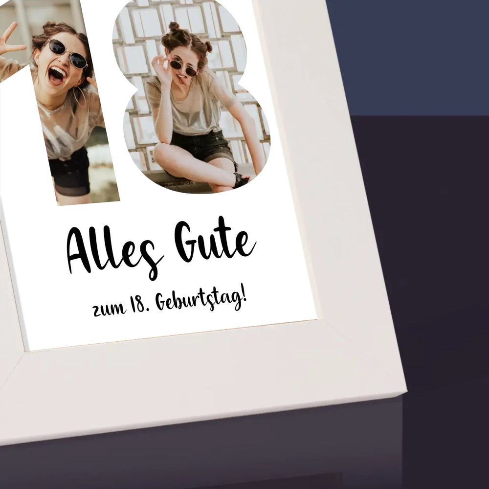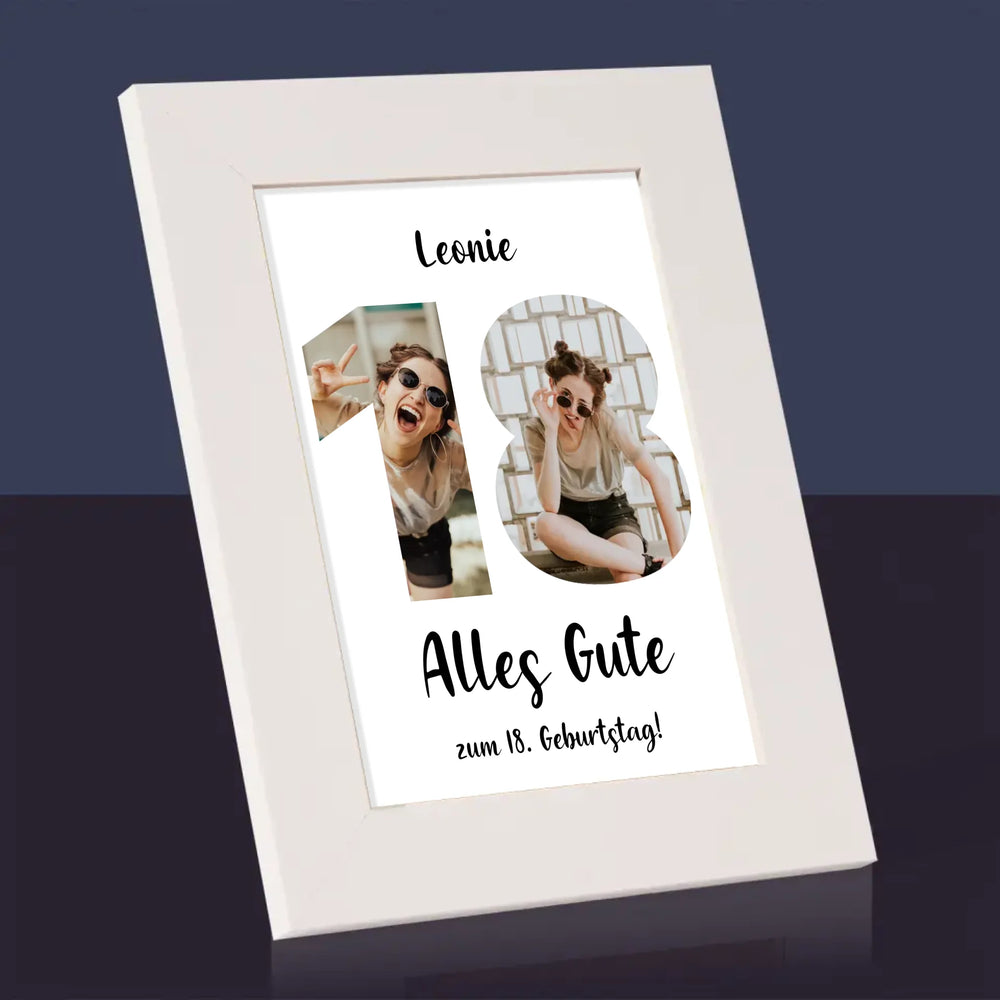 Buchstaben-Collage: 18. Geburtstag - Bilderrahmen - Vertikal