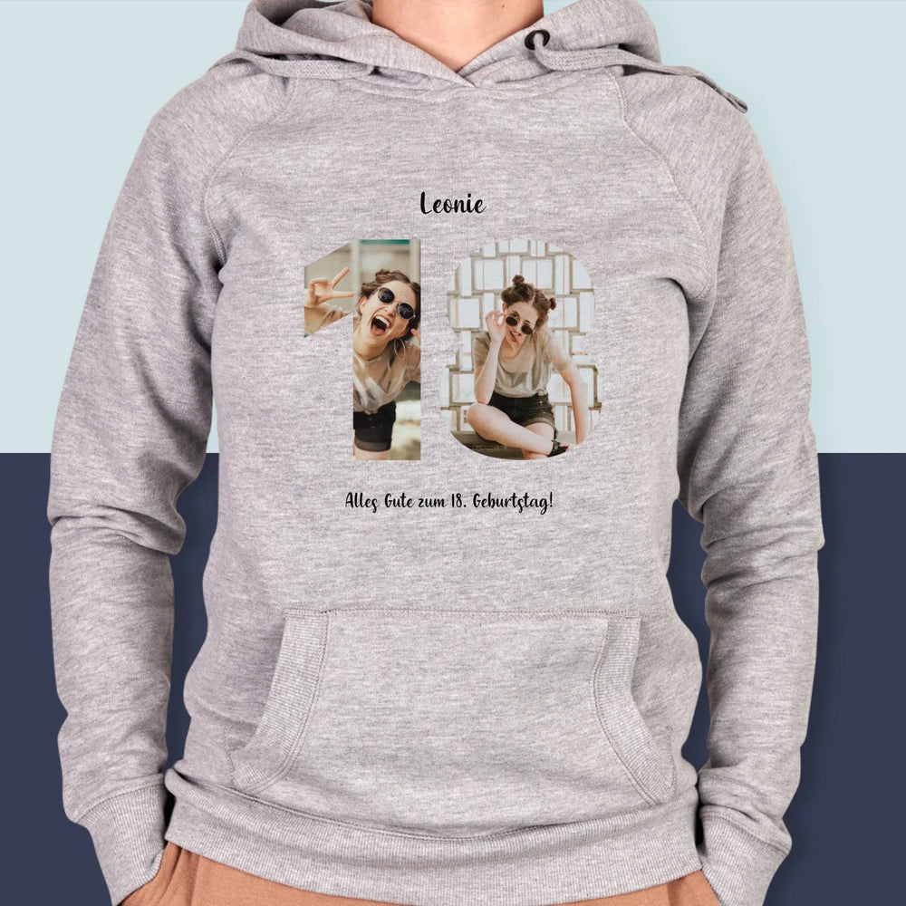 Buchstaben-Collage: 18. Geburtstag - Kapuzenpullover für Damen
