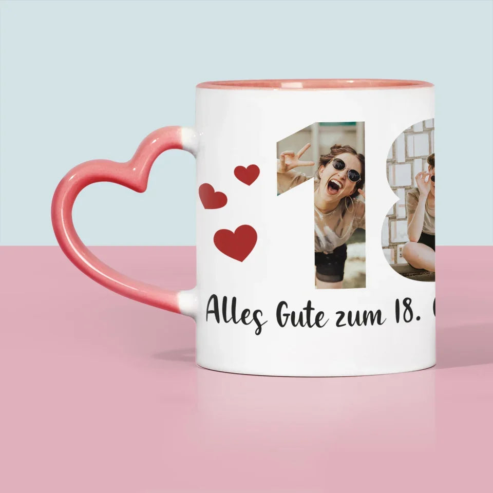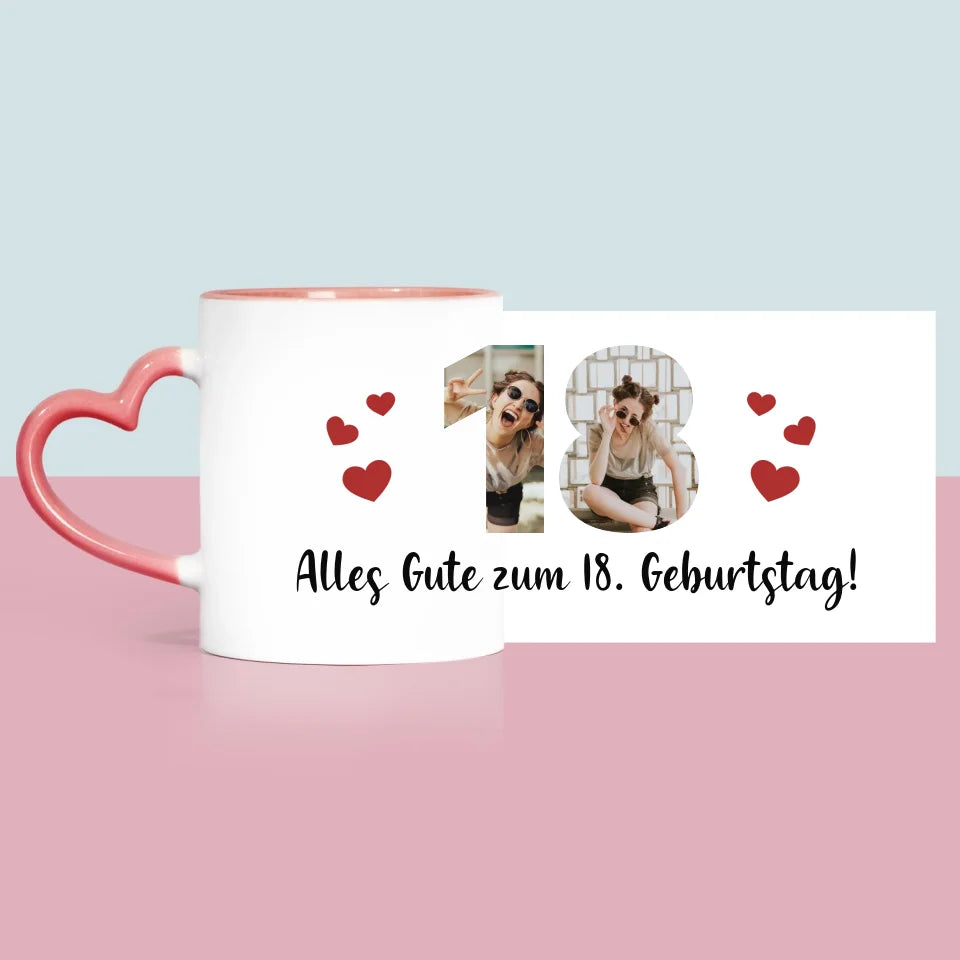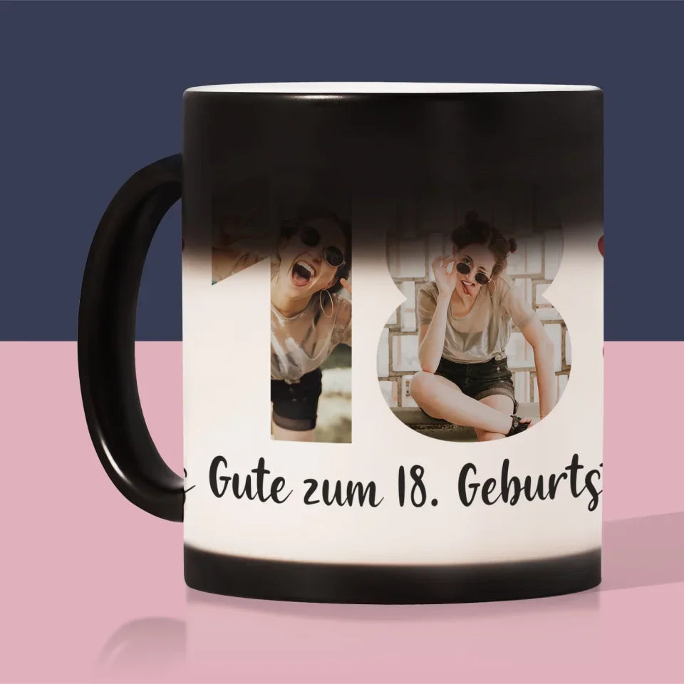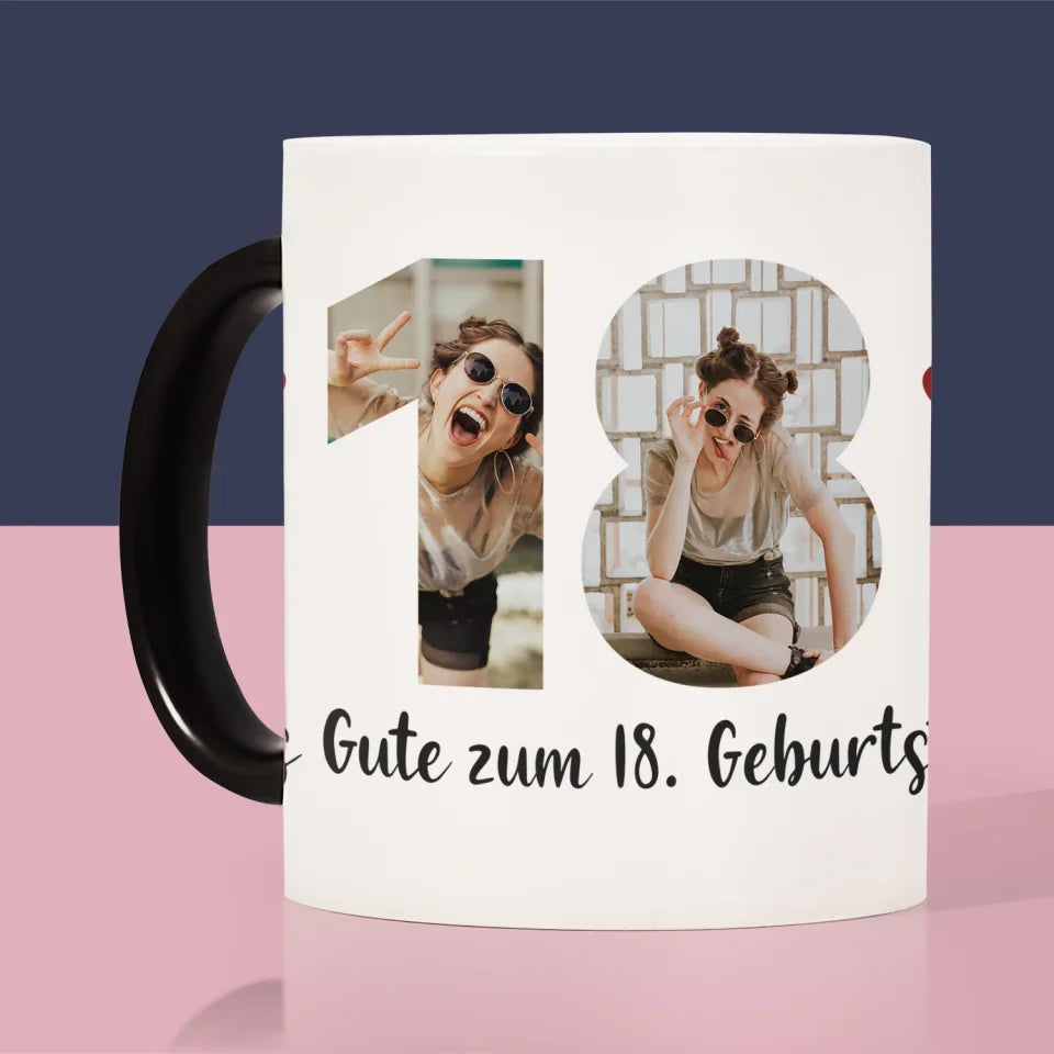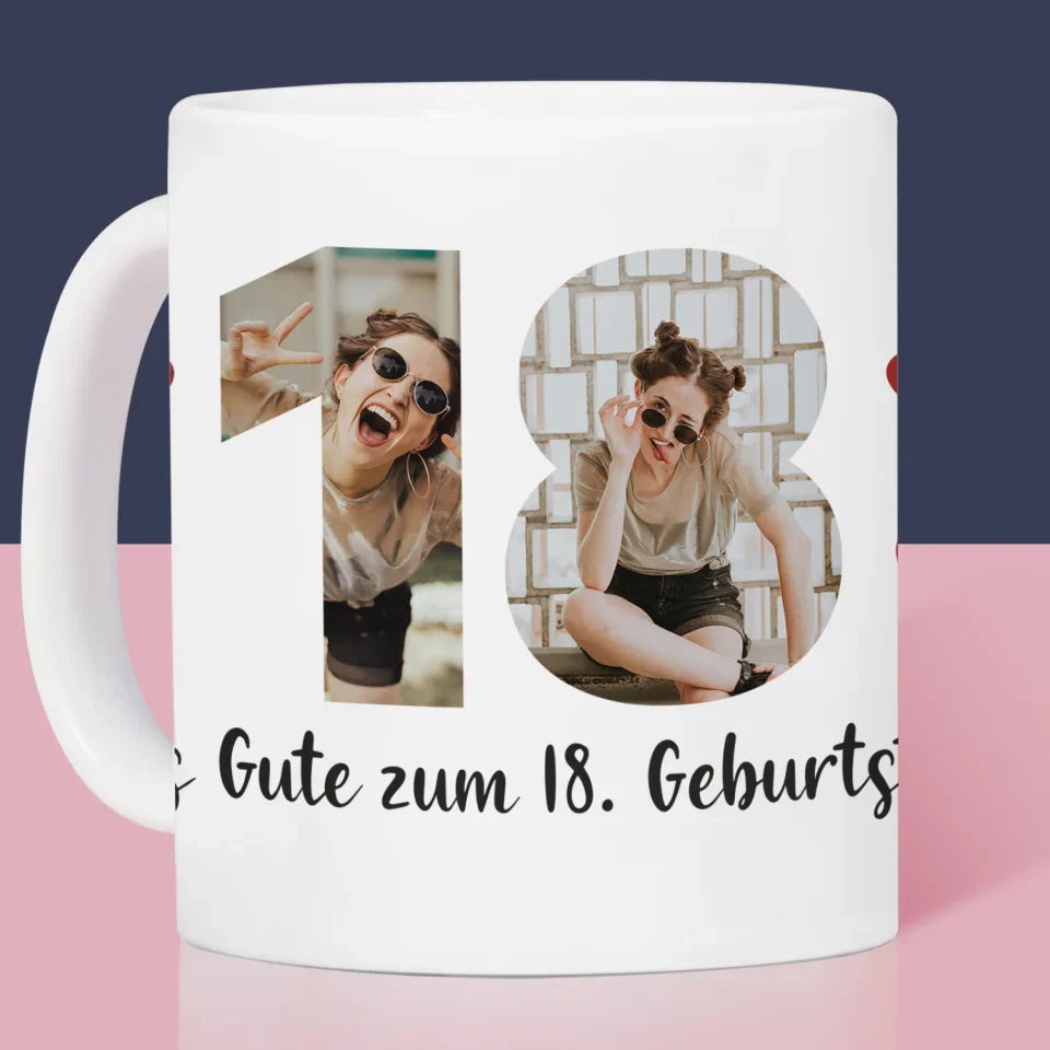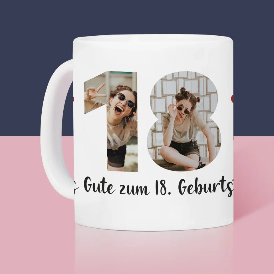 Buchstaben-Collage: 18. Geburtstag - Tasse