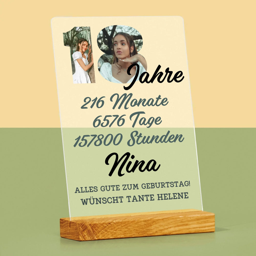 Buchstaben-Collage: 18 Jahre Countdown - Druck auf Acrylglas
