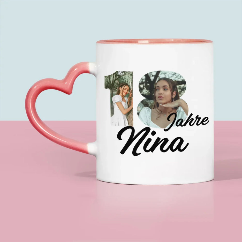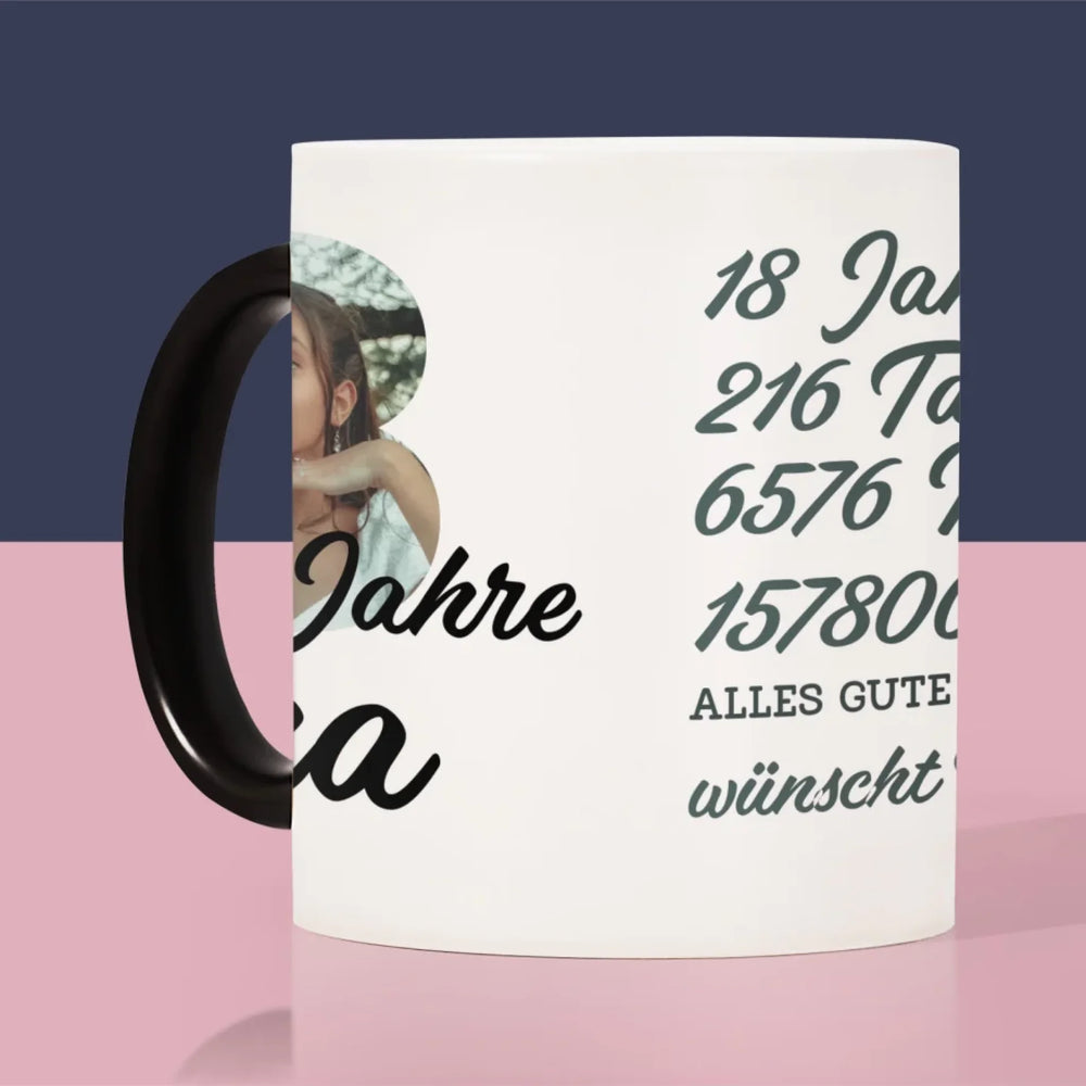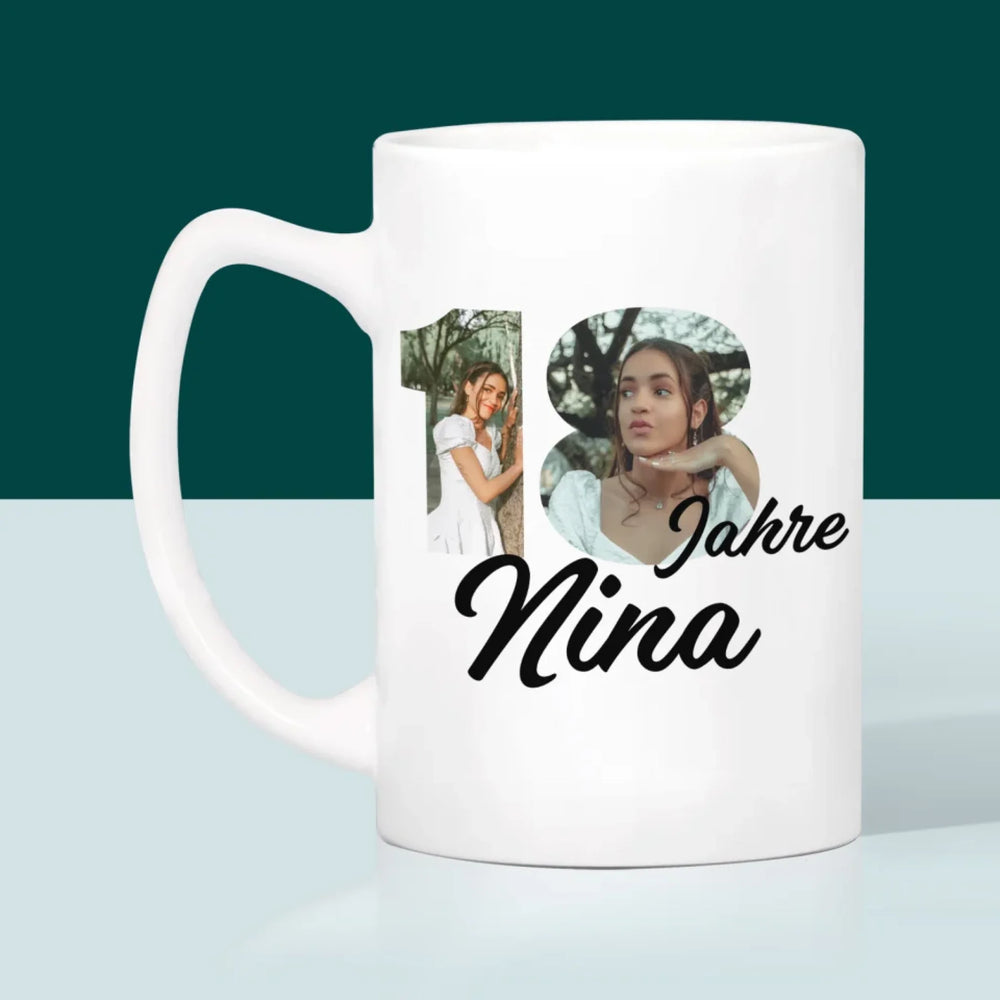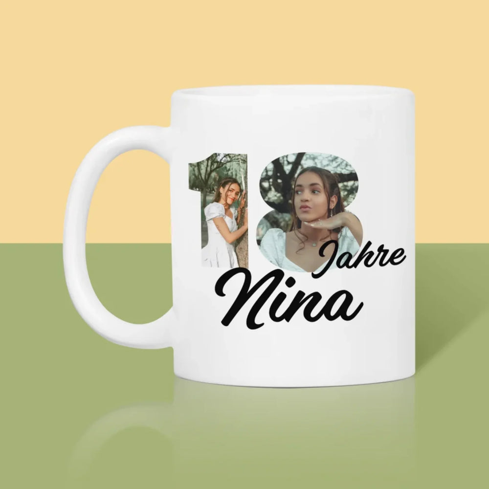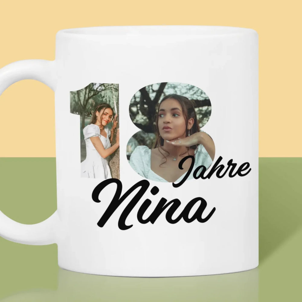 Buchstaben-Collage: 18 Jahre Countdown - Tasse