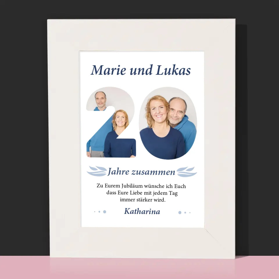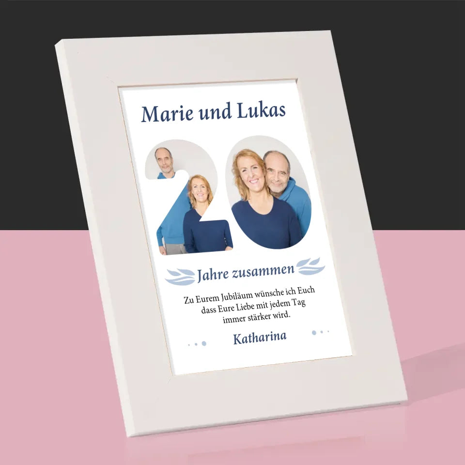 Buchstaben-Collage: 20 Jahre Zusammen - Bilderrahmen - Vertikal