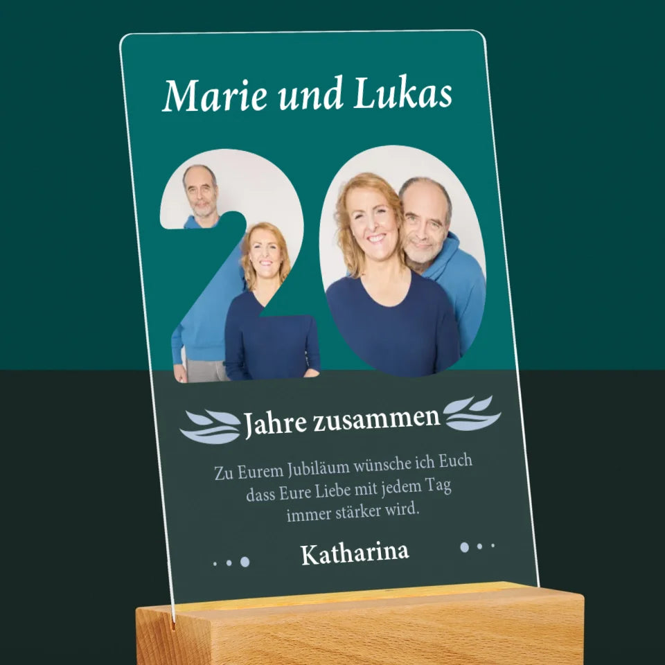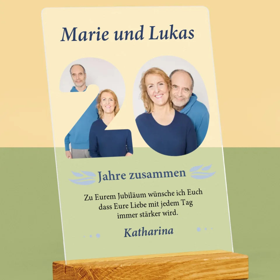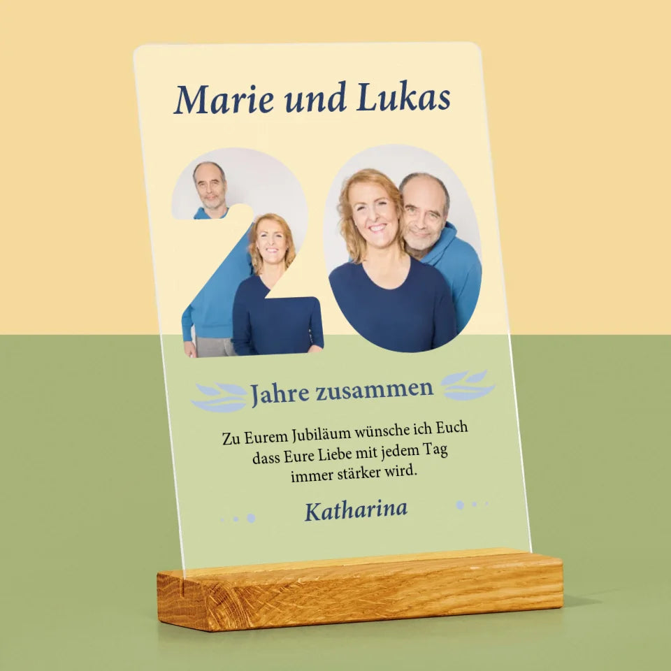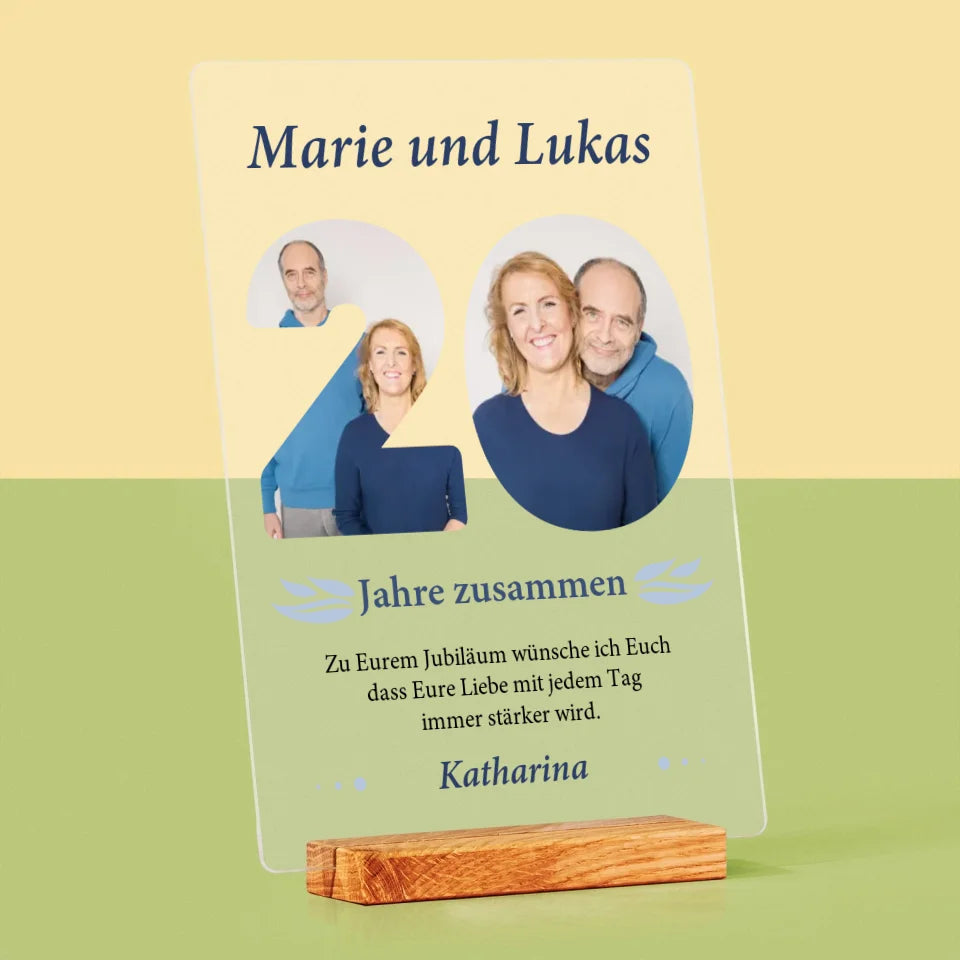 Buchstaben-Collage: 20 Jahre Zusammen - Druck auf Acrylglas