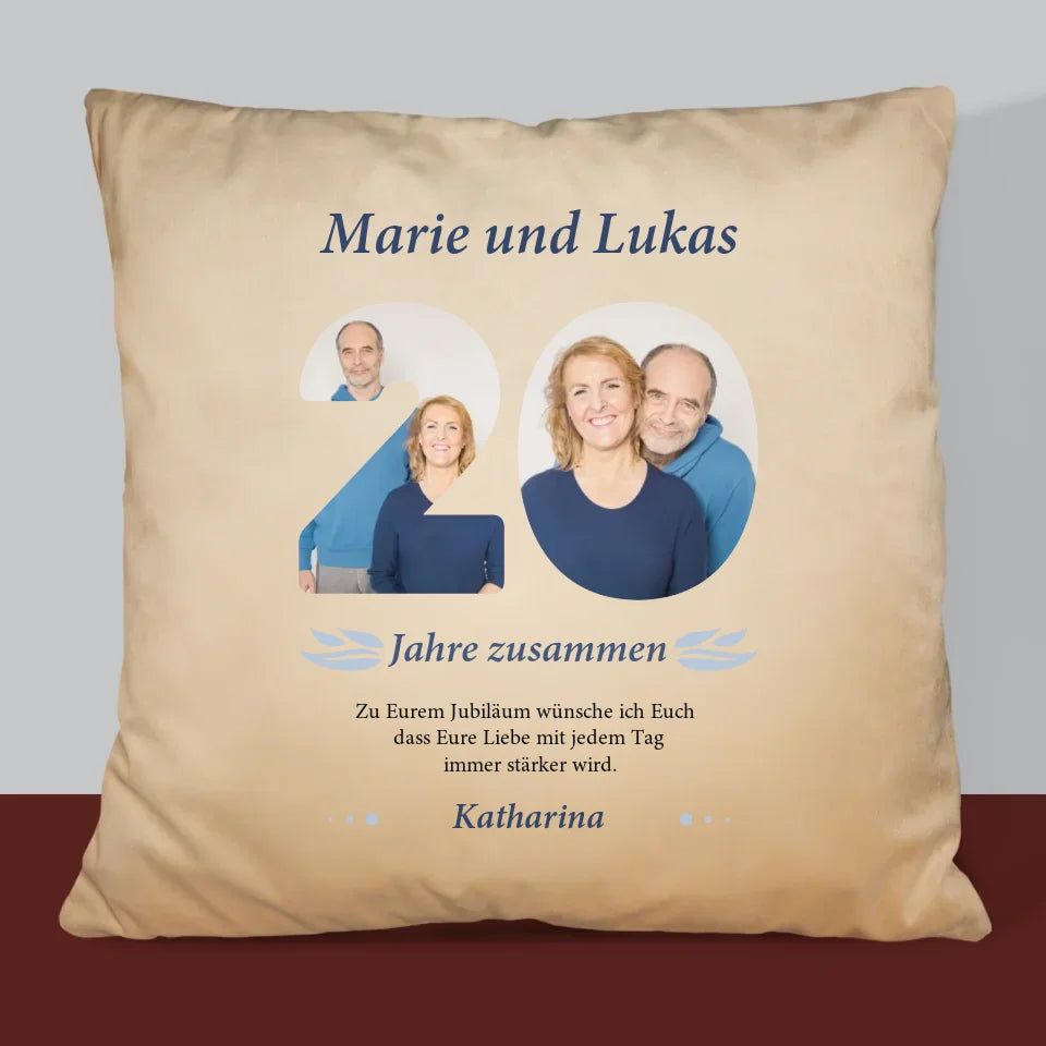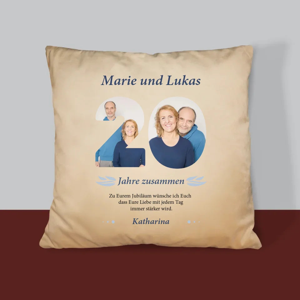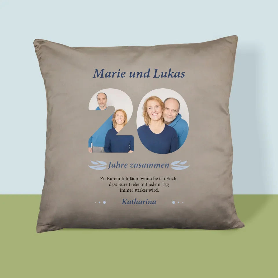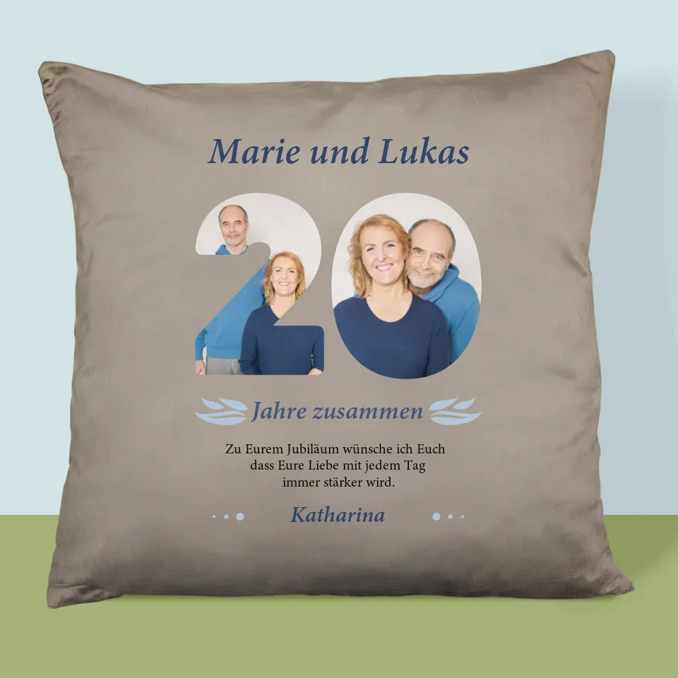Buchstaben-Collage: 20 Jahre Zusammen - Kissen