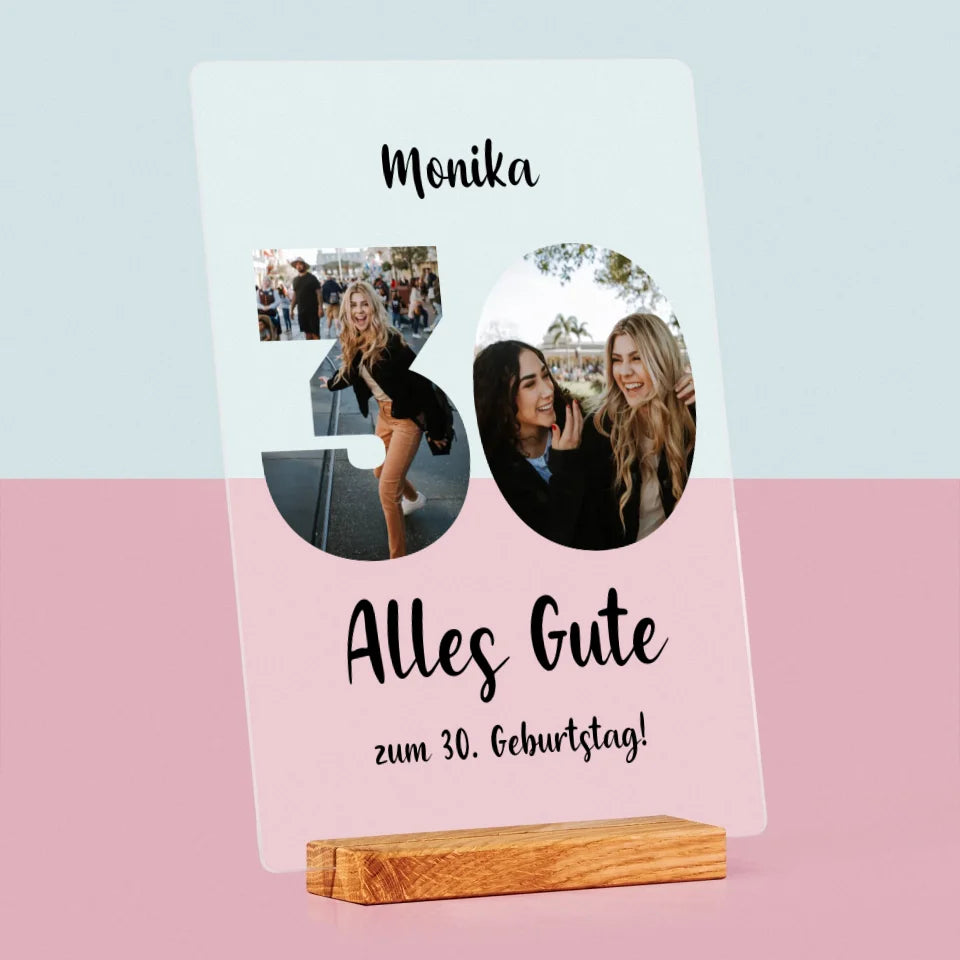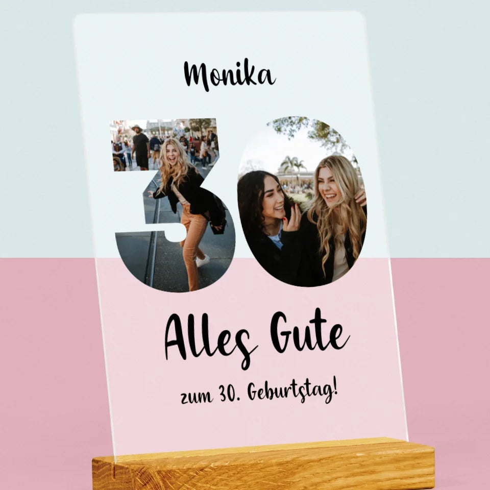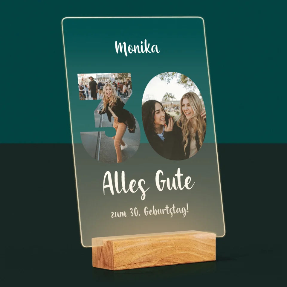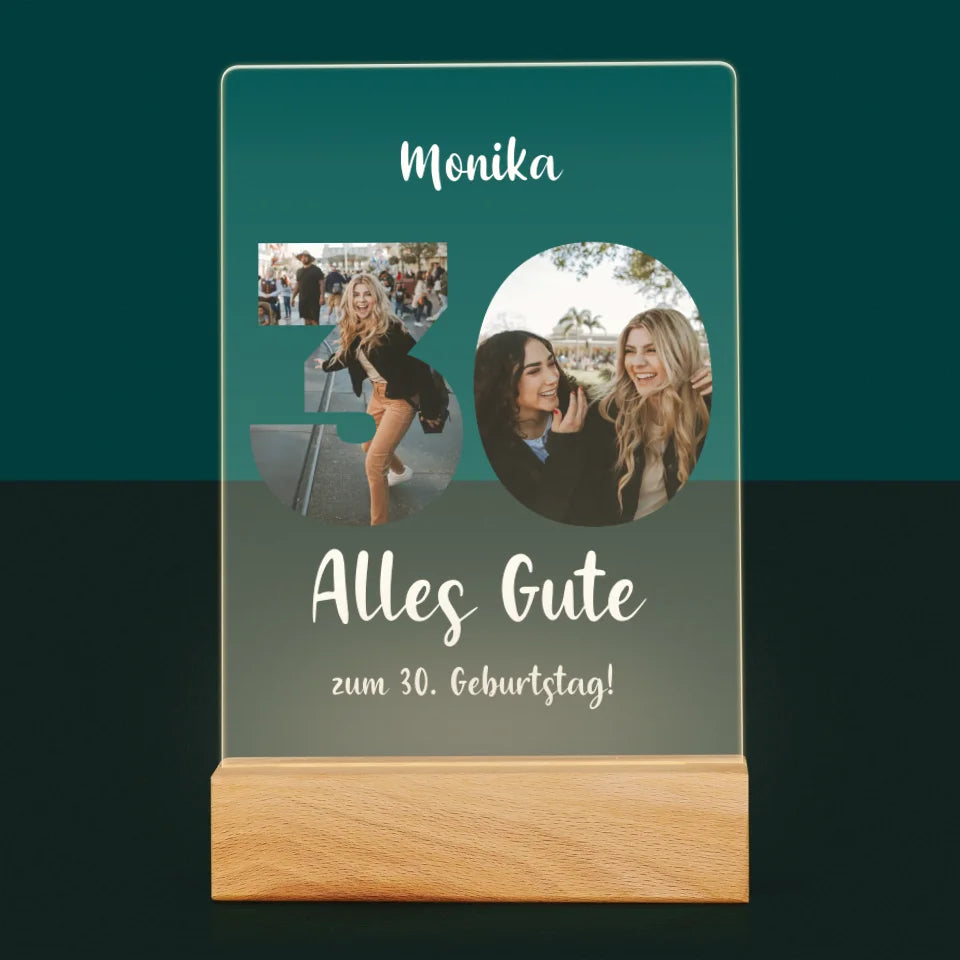 Buchstaben-Collage: 30. Geburtstag - Druck auf Acrylglas mit LED-Beleuchtung
