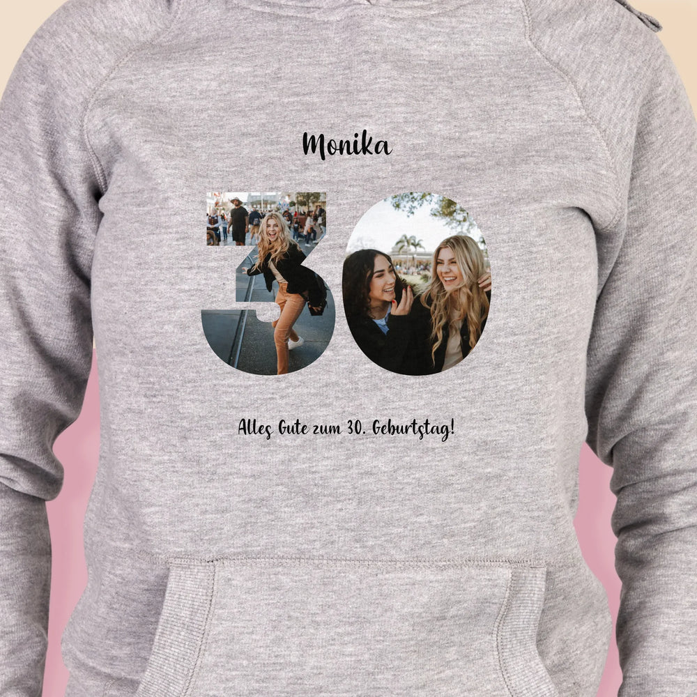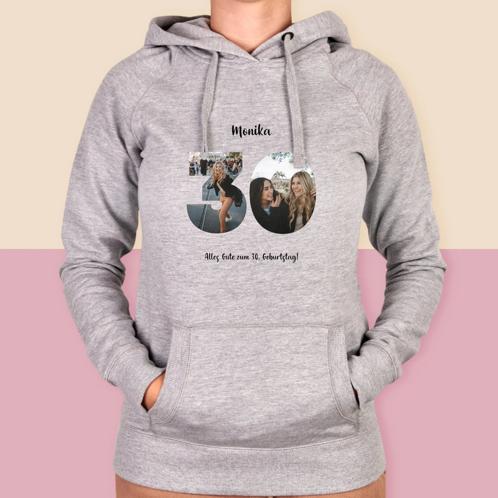 Buchstaben-Collage: 30. Geburtstag - Kapuzenpullover für Damen