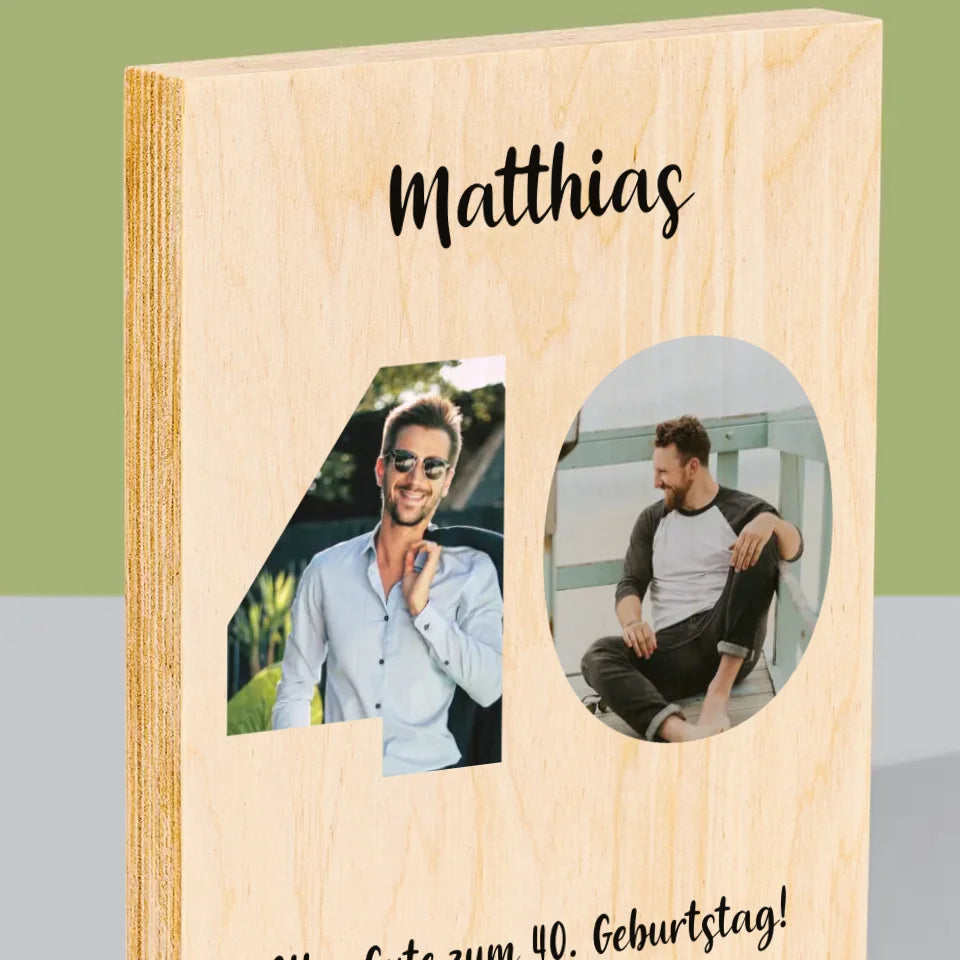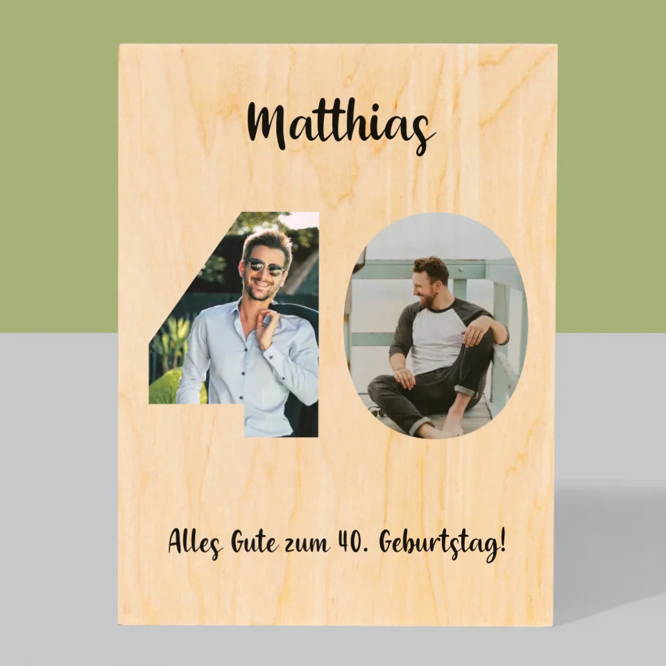Buchstaben-Collage: 40. Geburtstag - Druck auf Holz - Vertikal