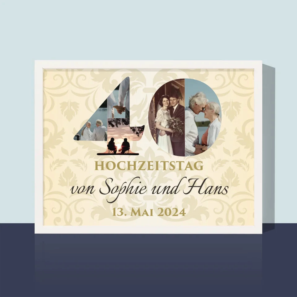 Buchstaben-Collage: 40. Hochzeitstag - Druck mit Rahmen 30x40 - Horizontal