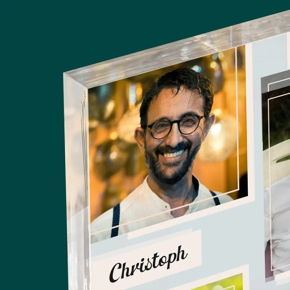 Druck auf einem 2 cm dicken, klaren Acrylblock (Plexiglas), individuell personalisiert.