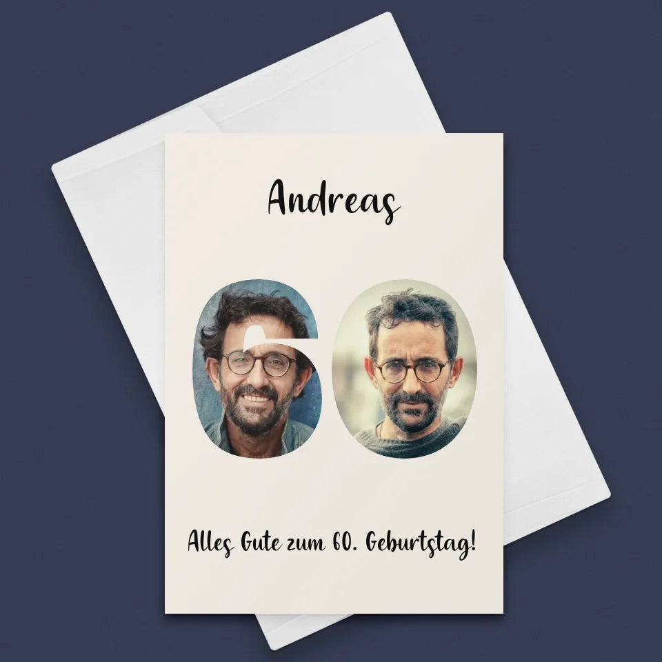 Personalisierte Glückwunschkarte für einen besonderen Anlass. Wählen Sie Ihre eigenen Fotos aus und erstellen Sie ein einzigartiges Geschenk!