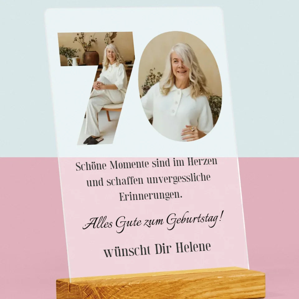 Buchstaben-Collage: 70 Jahre Alt - Druck auf Acrylglas mit LED-Beleuchtung