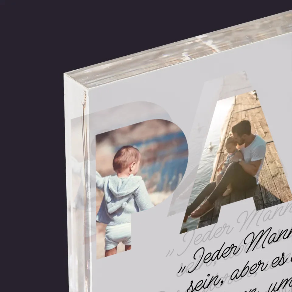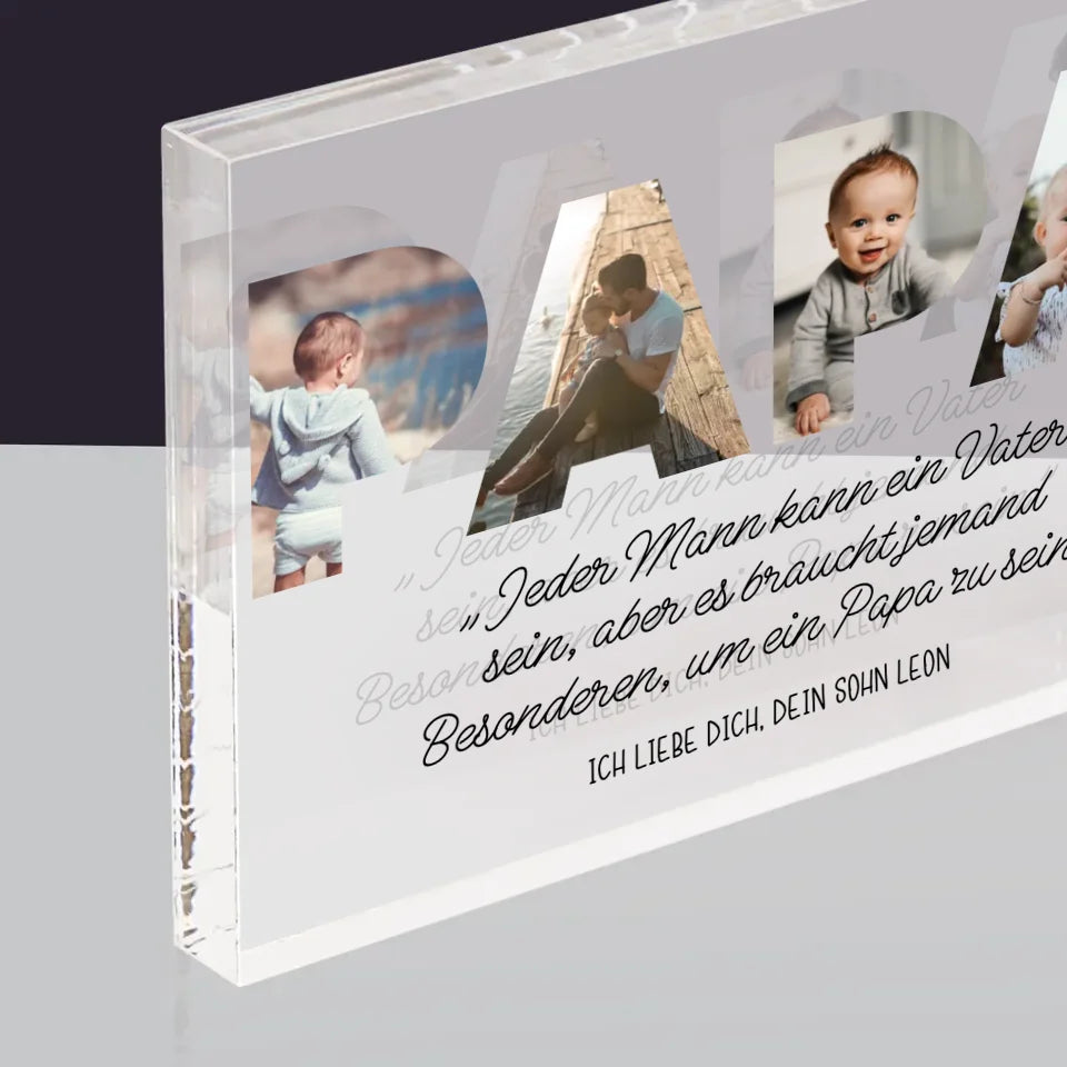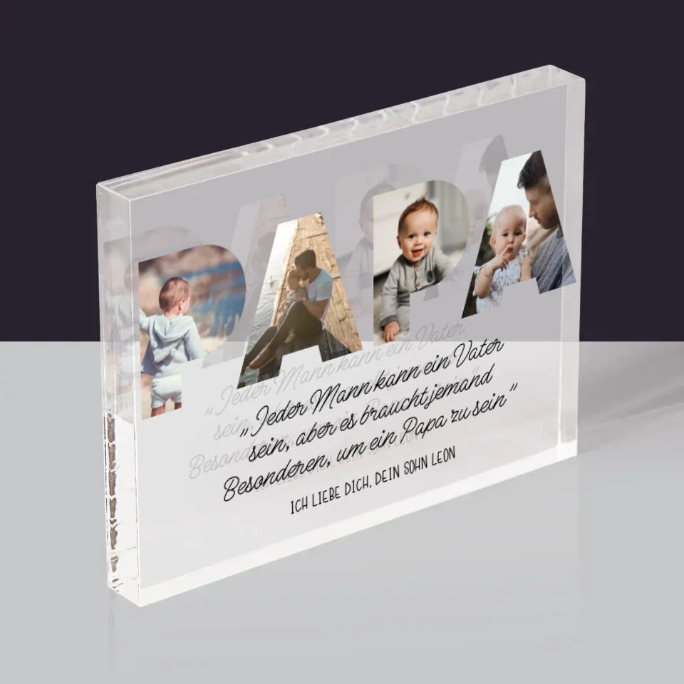 Buchstaben-Collage: Besonderer Papa - Acrylblock - Horizontal