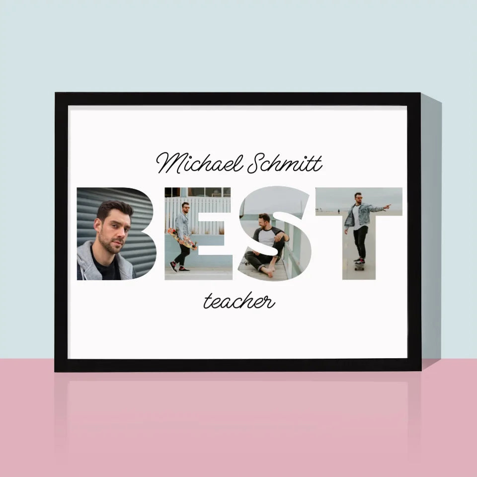 Buchstaben-Collage: Best Teacher - Druck mit Rahmen 30x40 - Horizontal