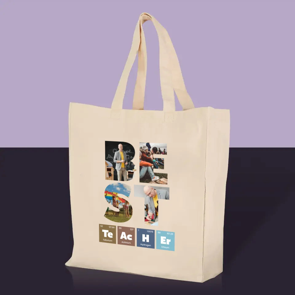Buchstaben-Collage: Best Teacher Elemente - Stofftasche