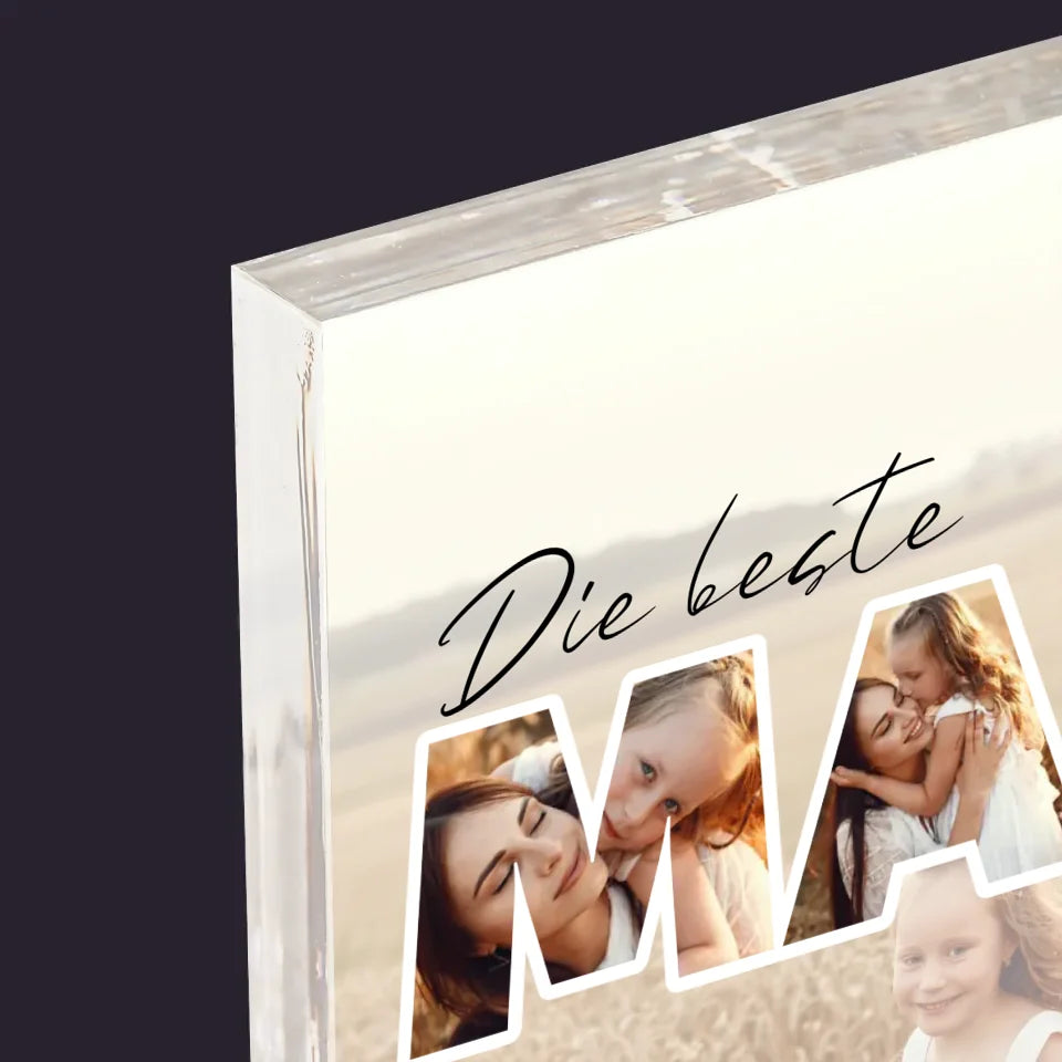 Buchstaben-Collage: Beste Mama Der Welt Fotos - Acrylblock - Horizontal