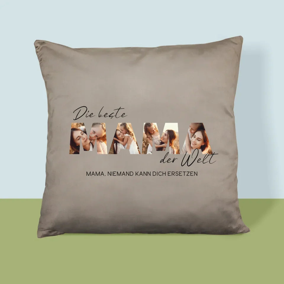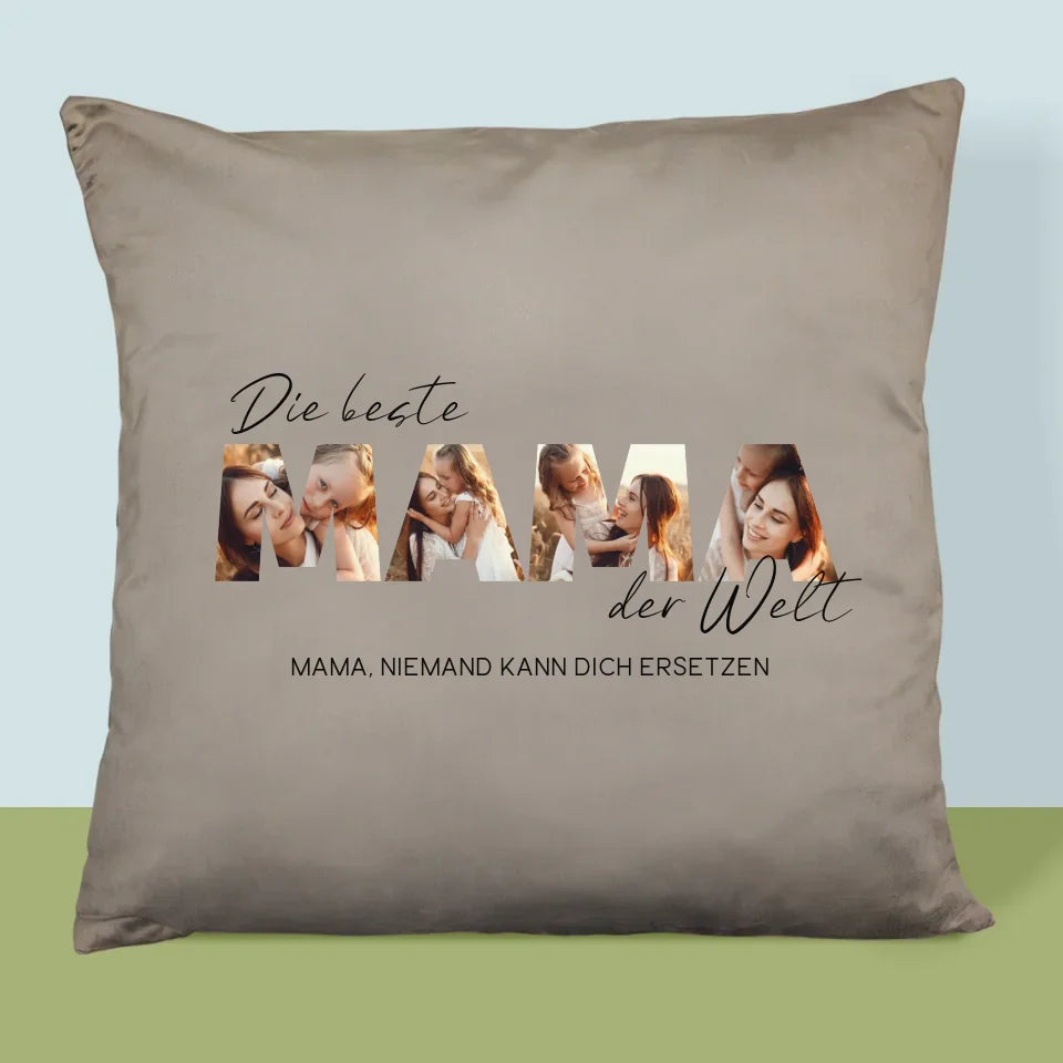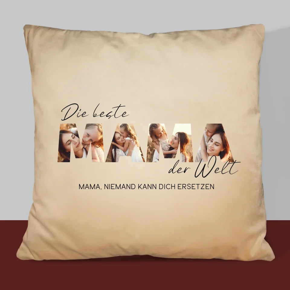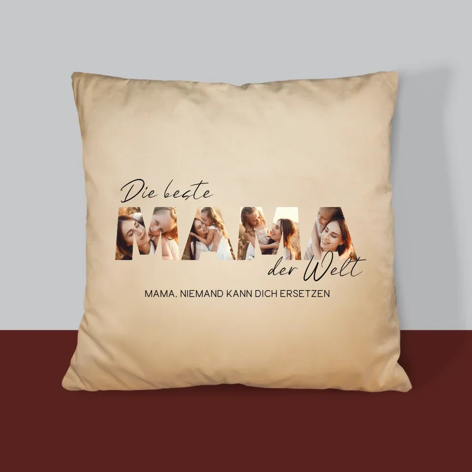 Buchstaben-Collage: Beste Mama Der Welt Fotos - Kissen
