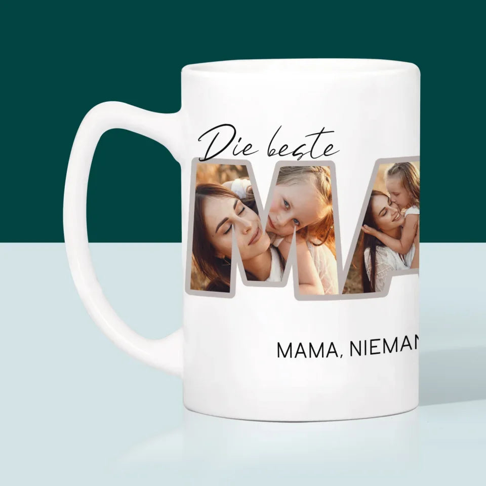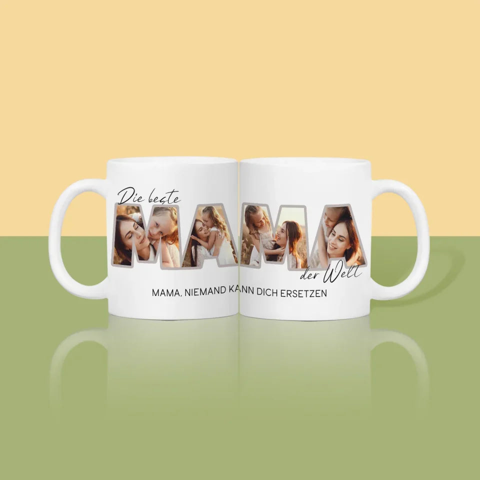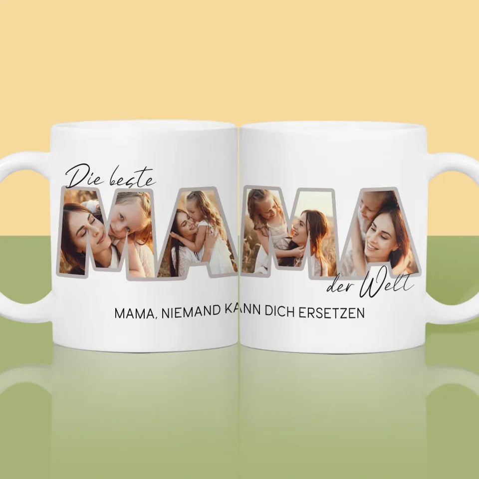 Buchstaben-Collage: Beste Mama Der Welt Fotos - Tasse