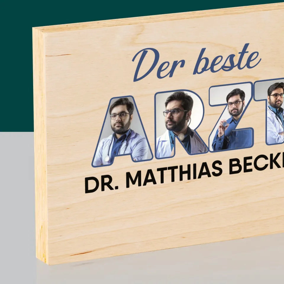 Buchstaben-Collage: Bester Arzt - Druck auf Holz - Horizontal