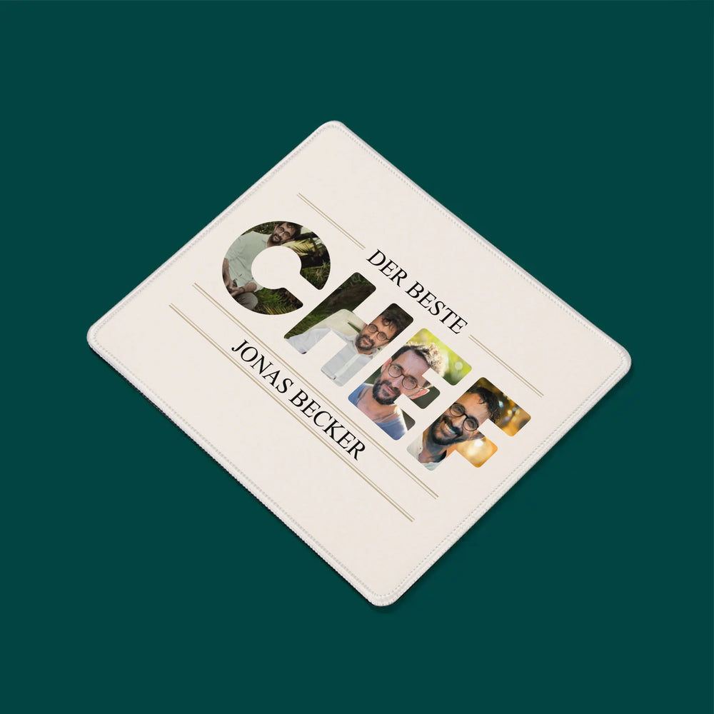 Buchstaben-Collage: Bester Chef 2 - Mauspad