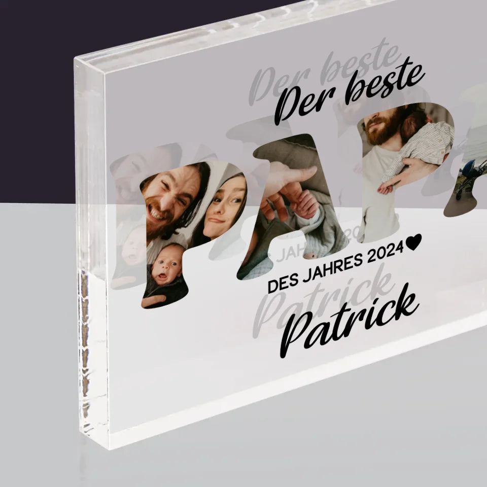 Buchstaben-Collage: Bester Papa Des Jahres - Acrylblock - Horizontal