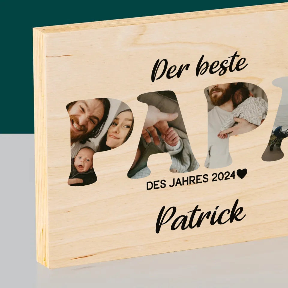 Buchstaben-Collage: Bester Papa Des Jahres - Druck Auf Holz
