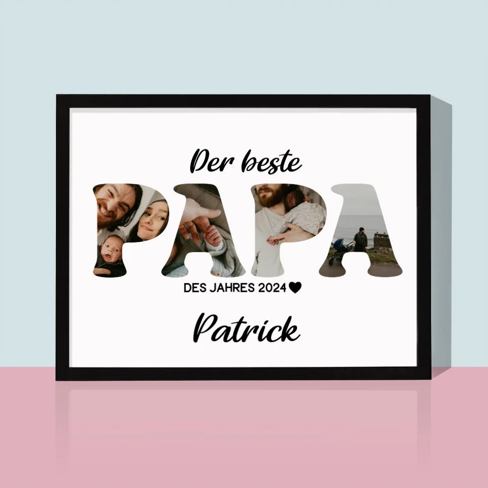 Buchstaben-Collage: Bester Papa Des Jahres - Druck mit Rahmen 30x40 - Horizontal