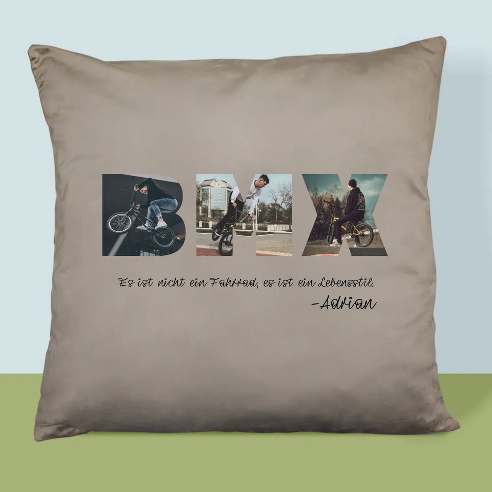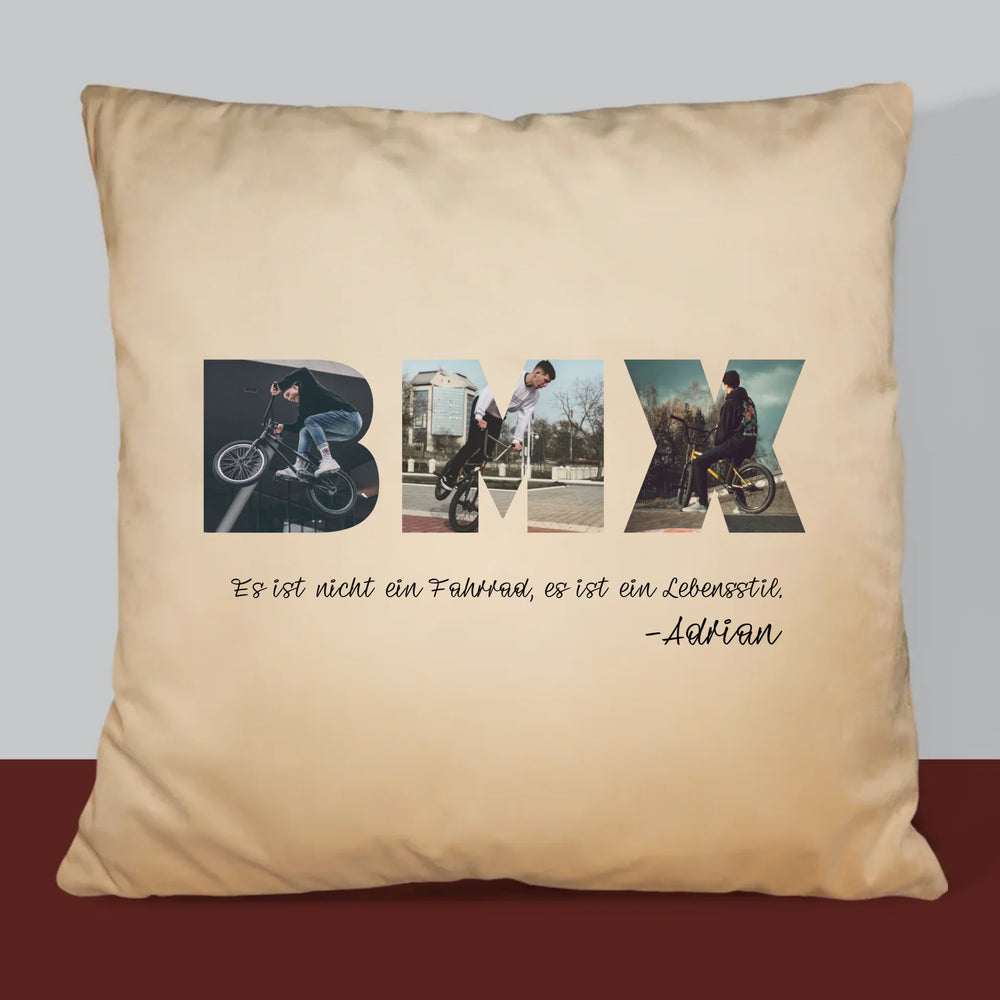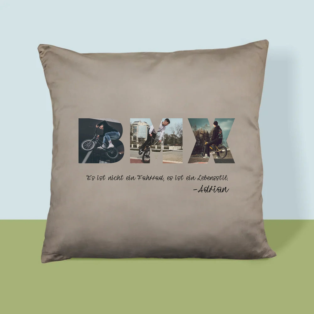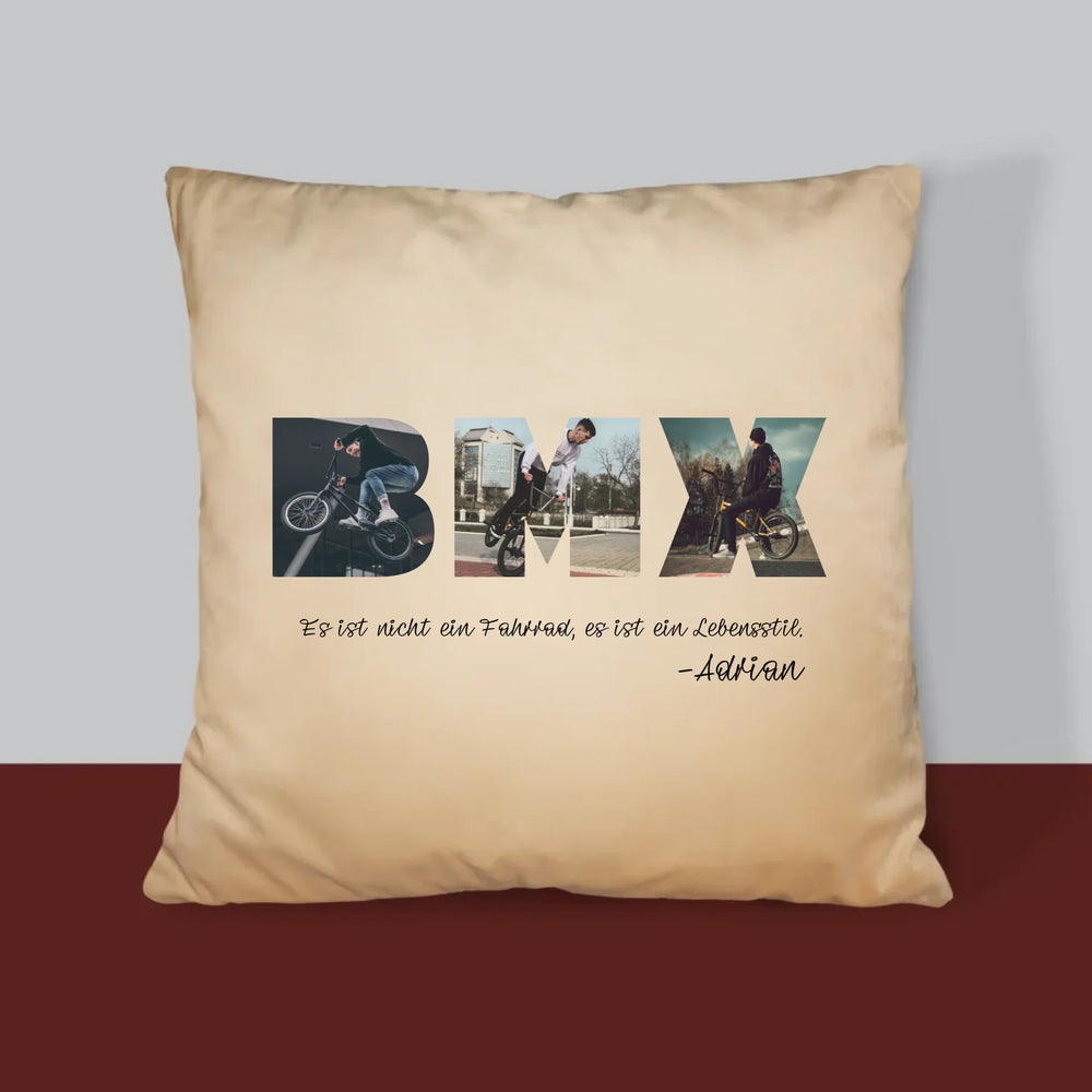 Buchstaben-Collage: Bmx - Kissen