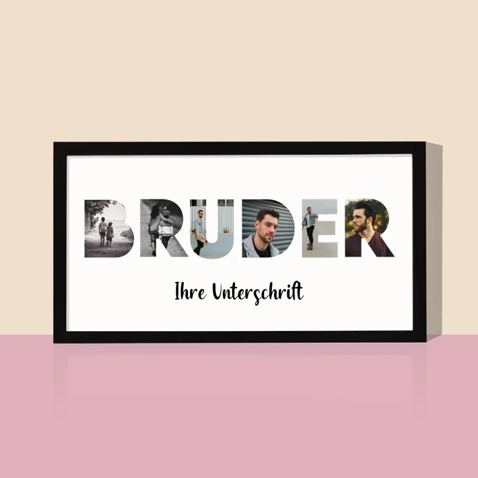 Buchstaben-Collage: Bruder - Druck mit Rahmen 20x40 - Horizontal