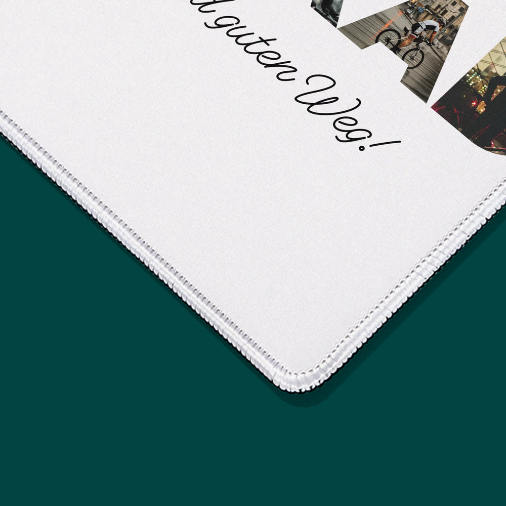 Die Unterseite des Mauspads besteht aus hochwertigem schwarzem Gummi und die Oberseite aus weißem Polyester.