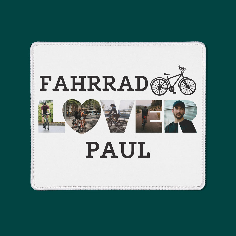 Buchstaben-Collage: Fahrradliebhaber - Mauspad