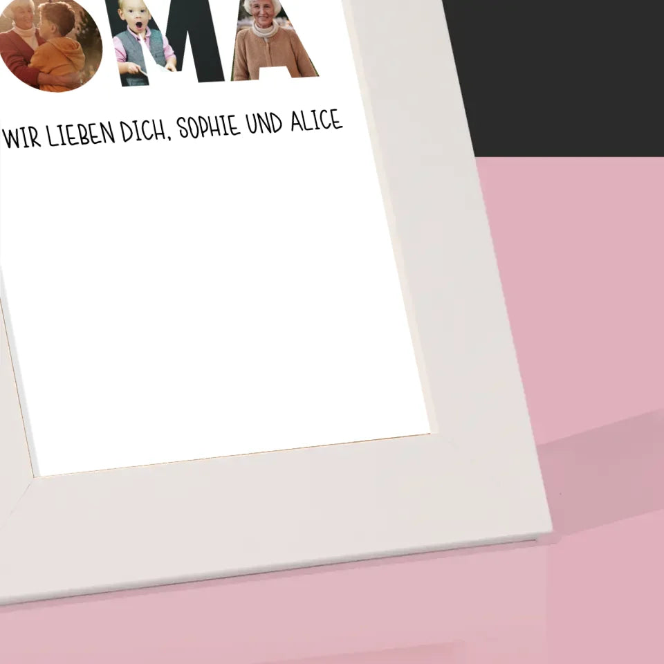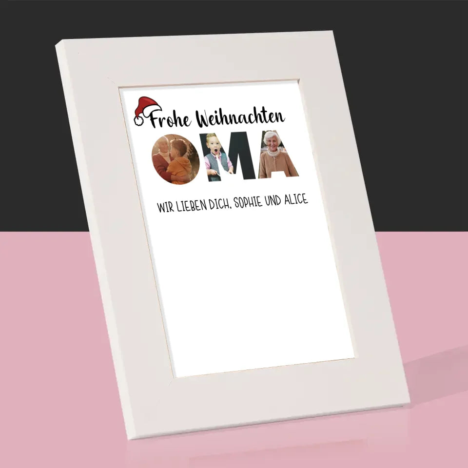 Buchstaben-Collage: Frohe Weihnachten Oma - Bilderrahmen - Vertikal