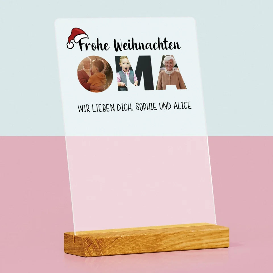 Buchstaben-Collage: Frohe Weihnachten Oma - Druck auf Acrylglas