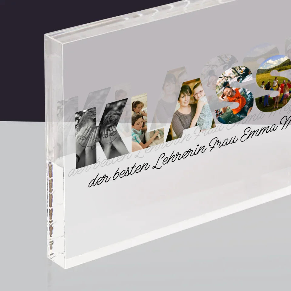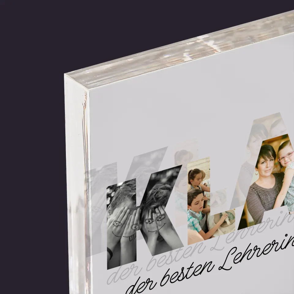Buchstaben-Collage: Klasse - Acrylblock - Horizontal