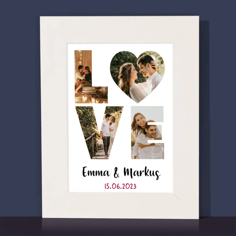 Buchstaben-Collage: Love - Bilderrahmen - Vertikal