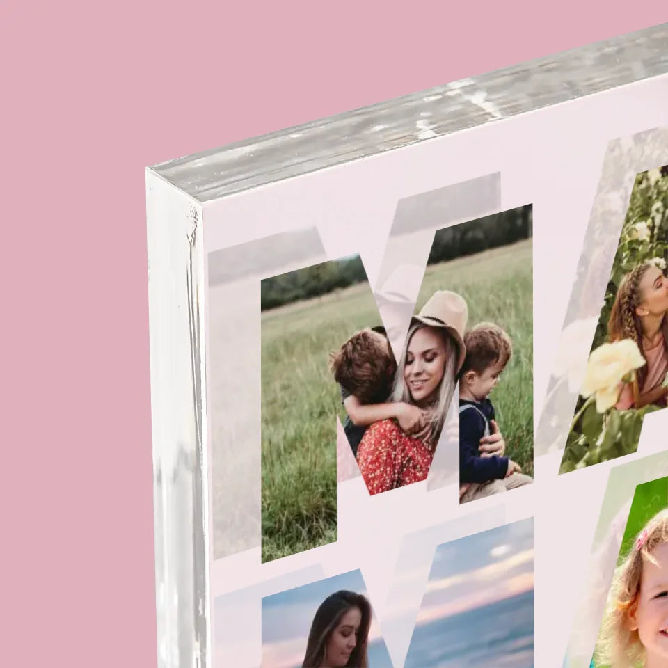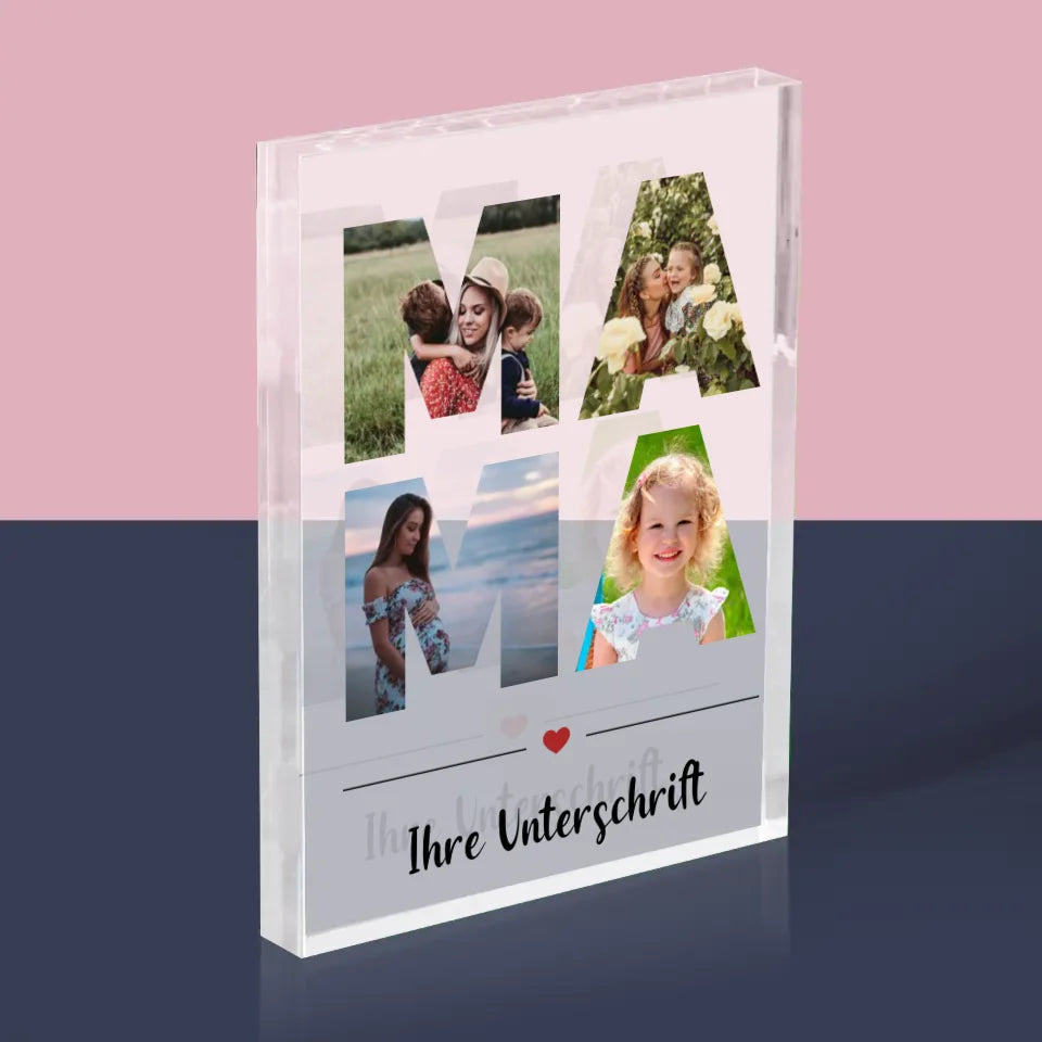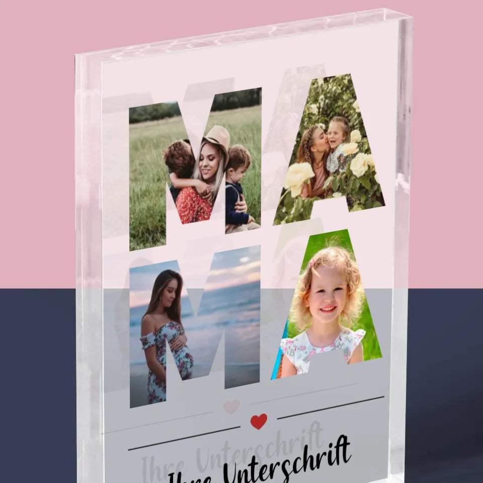 Buchstaben-Collage: Mama - Acrylblock - Vertikal