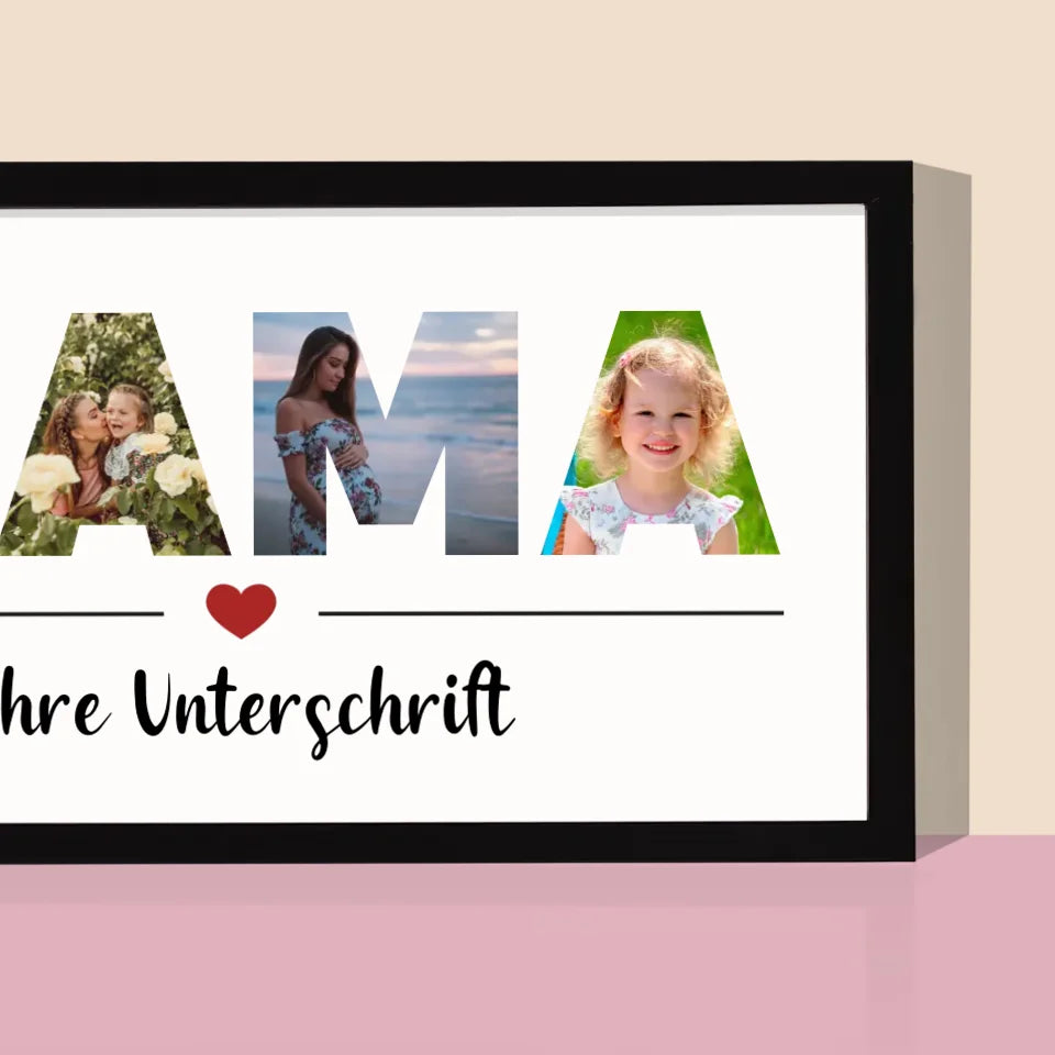 Buchstaben-Collage: Mama - Druck mit Rahmen 20x40 - Horizontal
