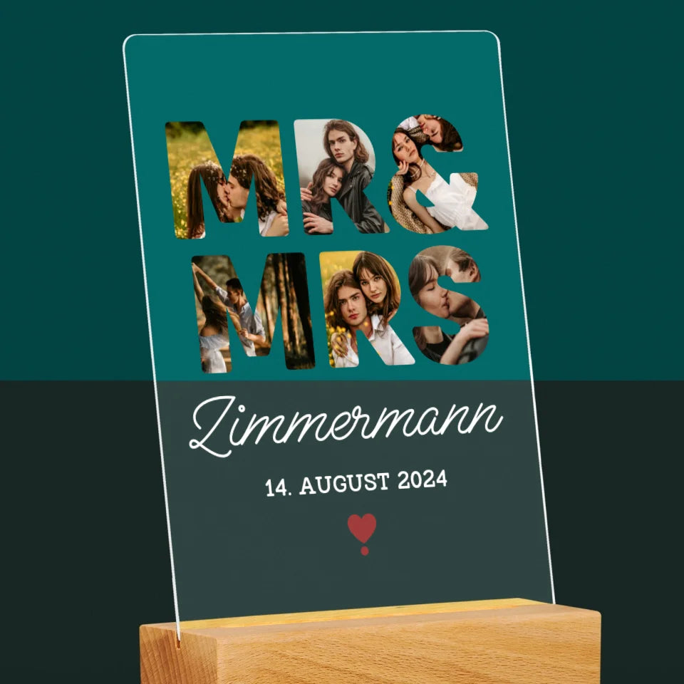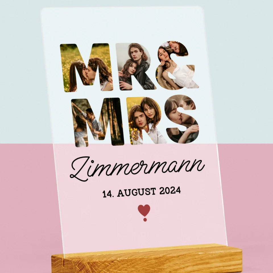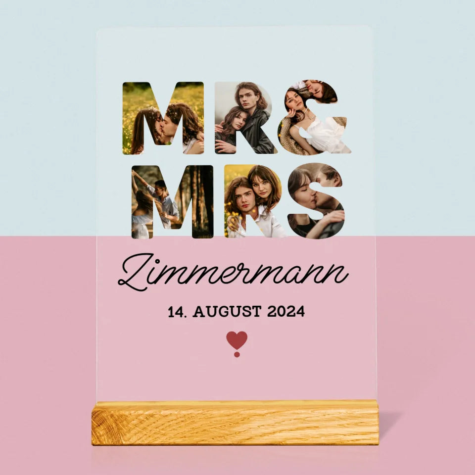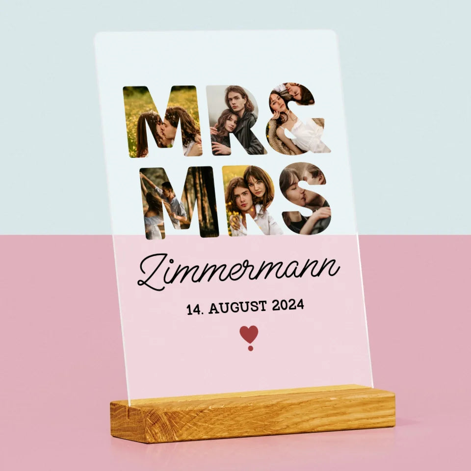 Buchstaben-Collage: Mr&Mrs - Druck auf Acrylglas