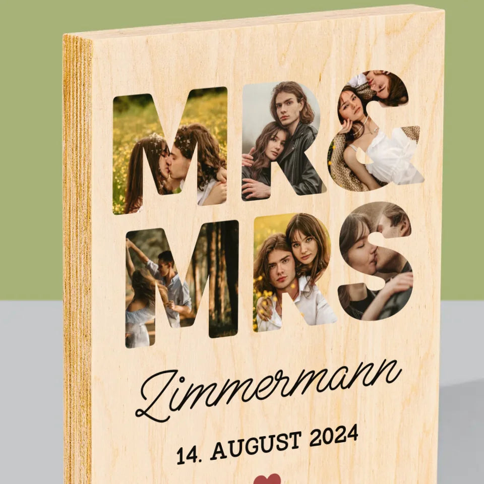 Buchstaben-Collage: Mr&Mrs - Druck auf Holz - Vertikal
