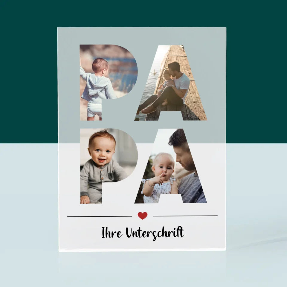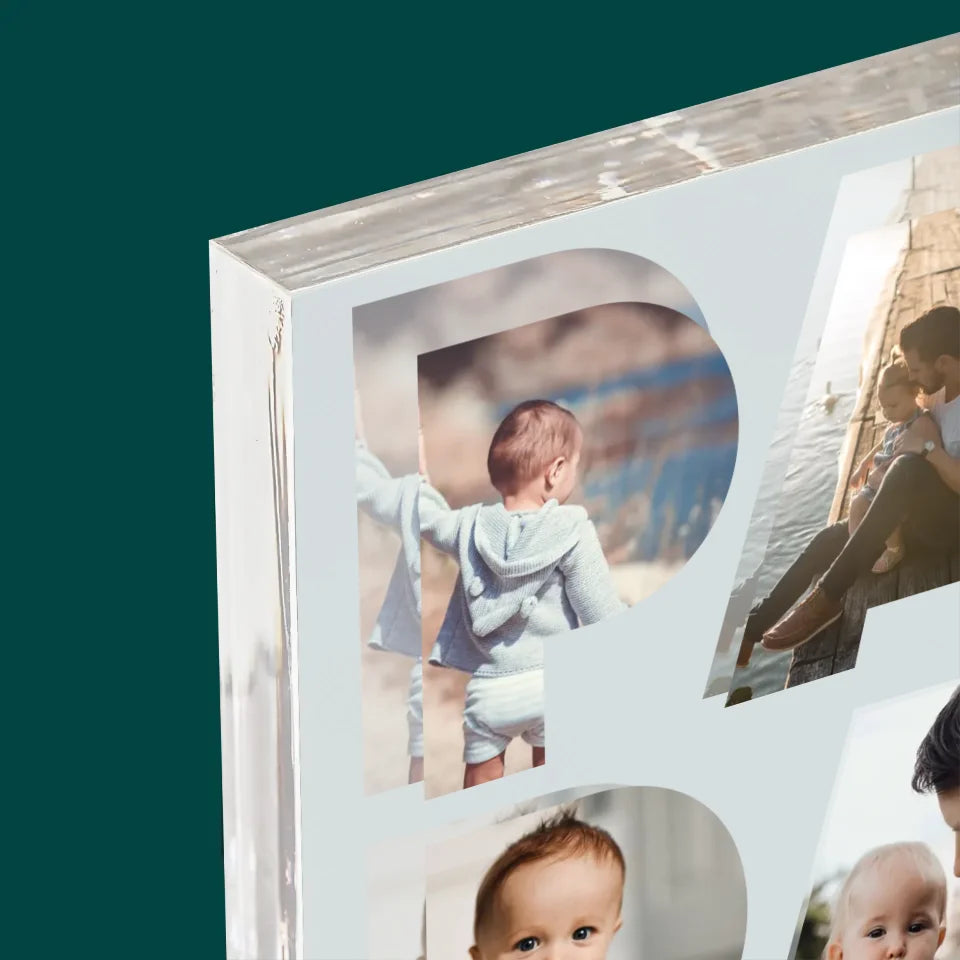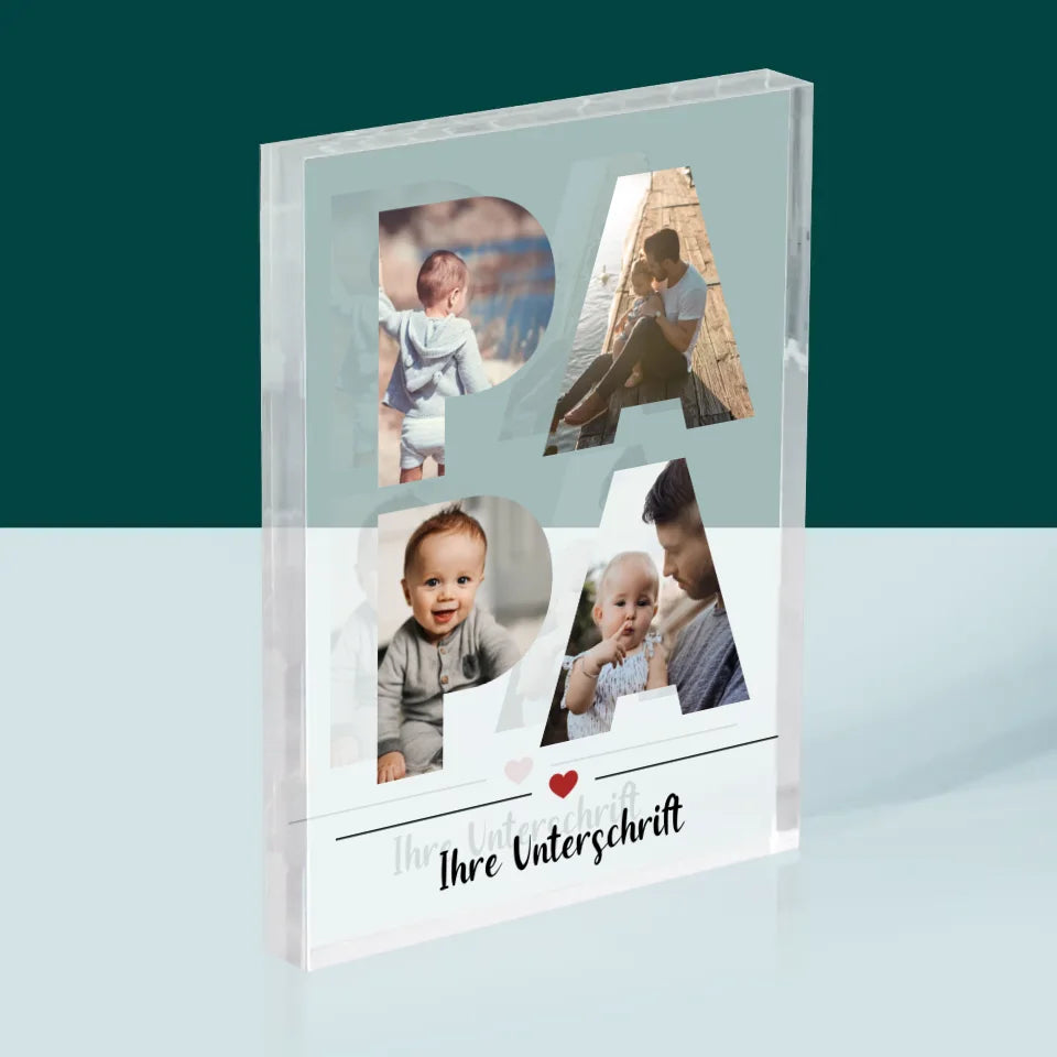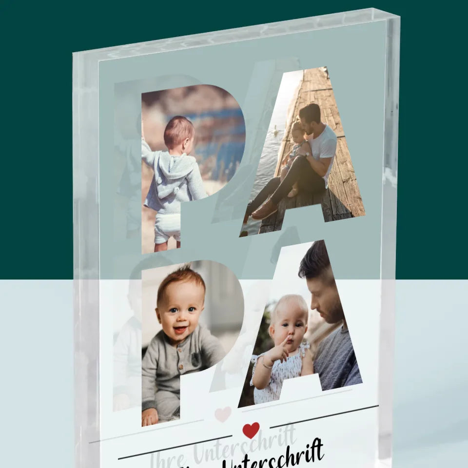 Buchstaben-Collage: Papa - Acrylblock - Vertikal
