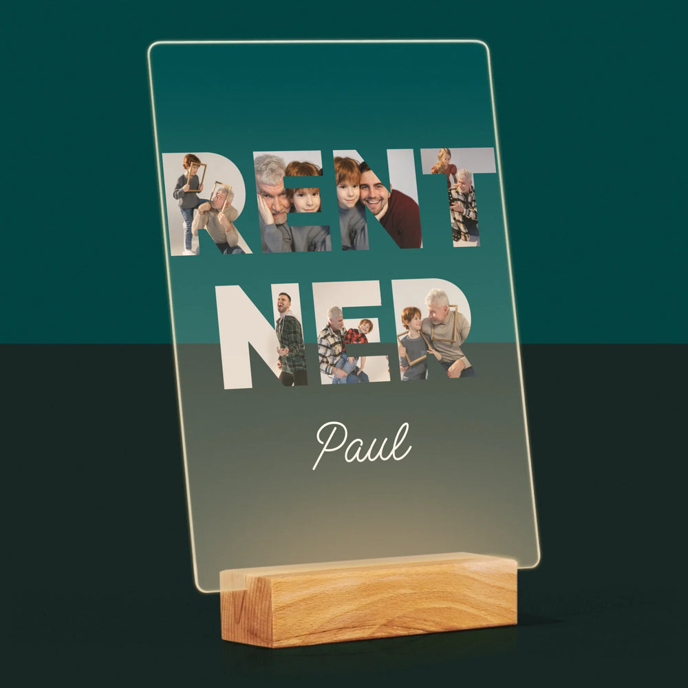 Buchstaben-Collage: Rentner - Druck auf Acrylglas