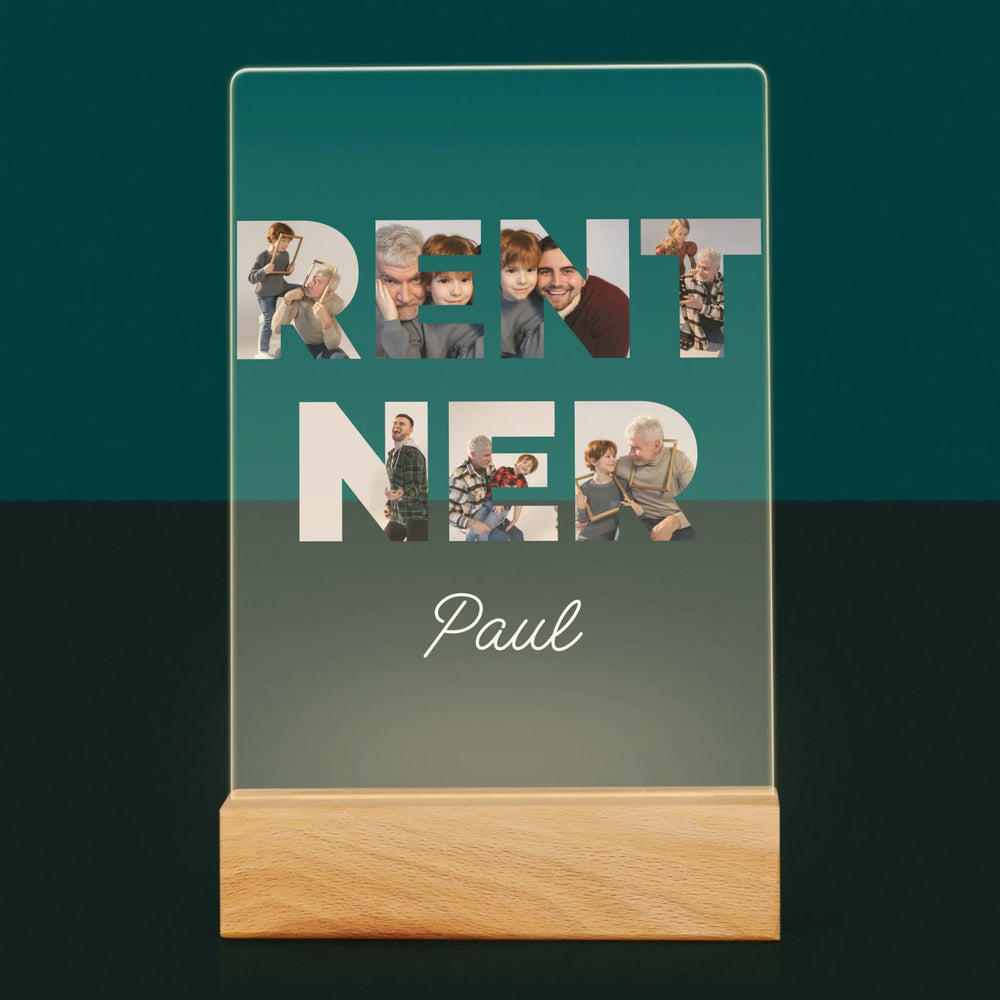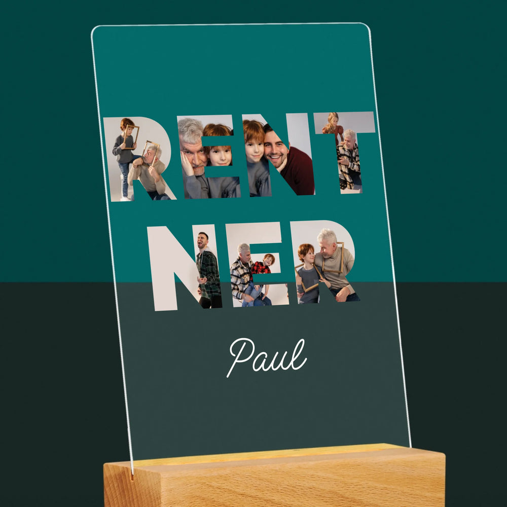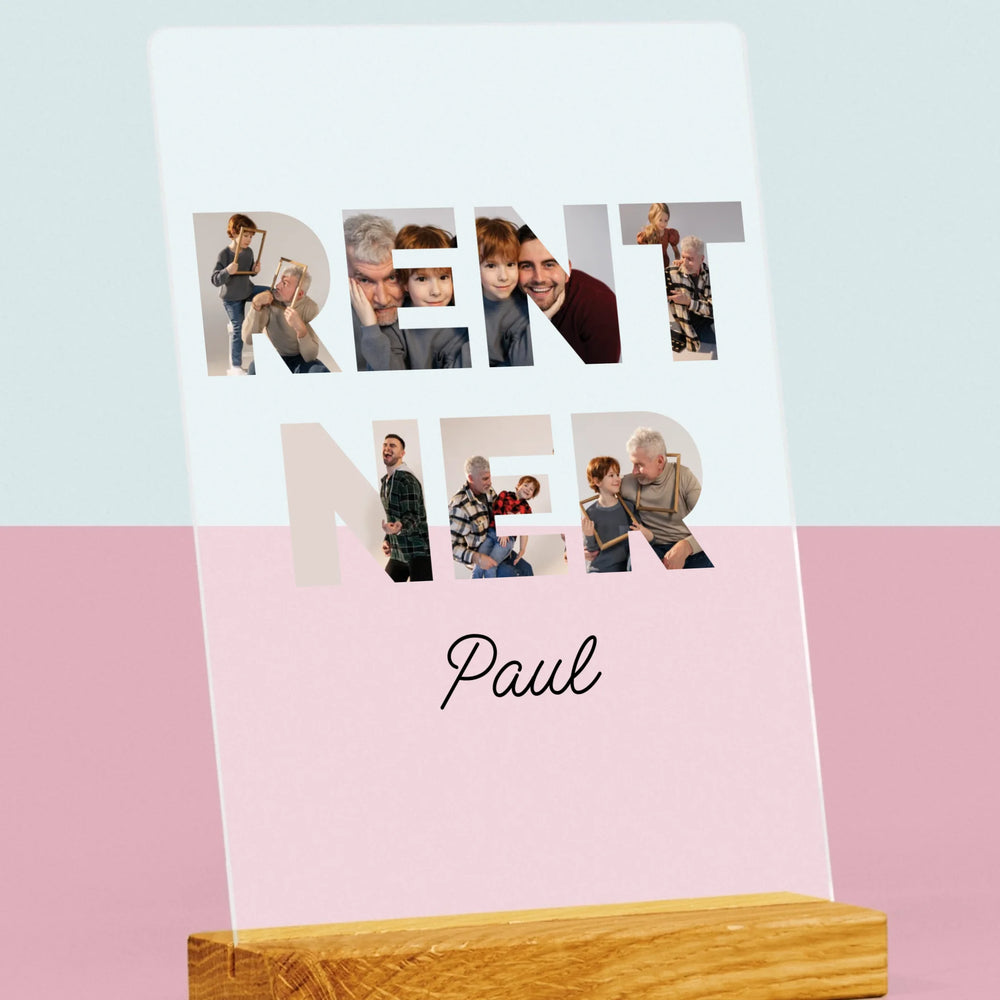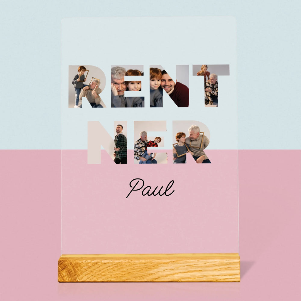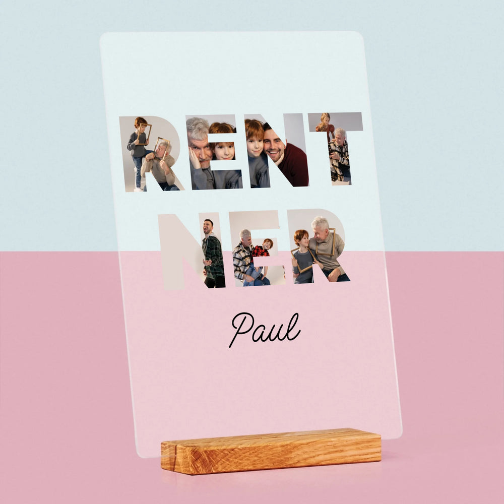Buchstaben-Collage: Rentner - Druck auf Acrylglas